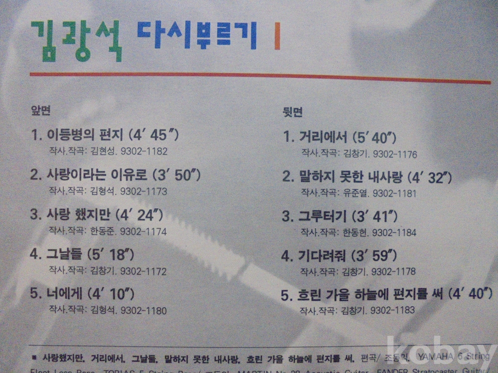 김광석 다시부르기 1 ( 가사지 포함 ) 상태최상 민트급 LP 입니다.
