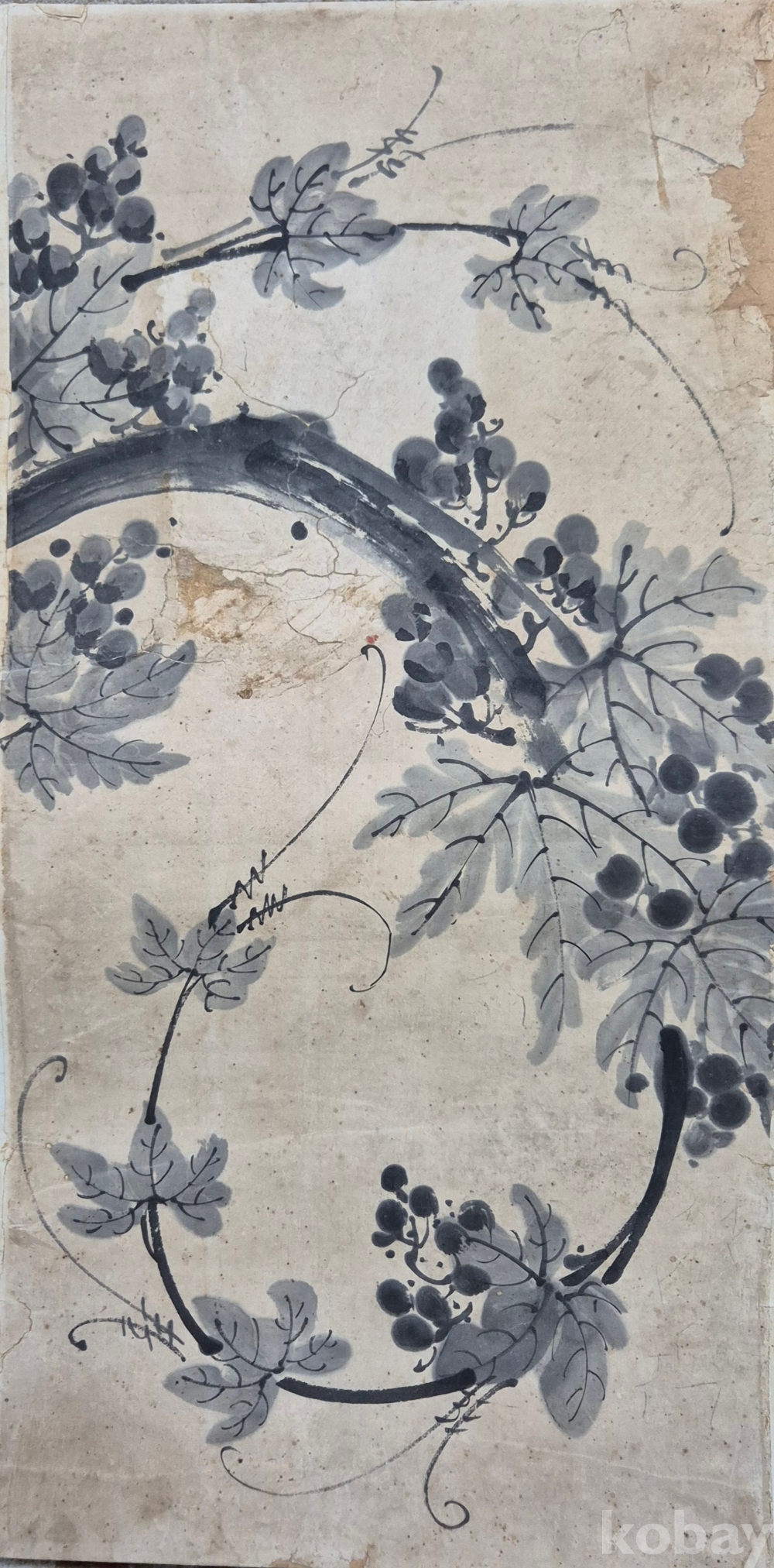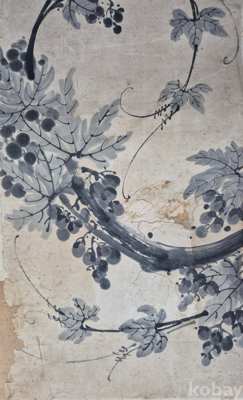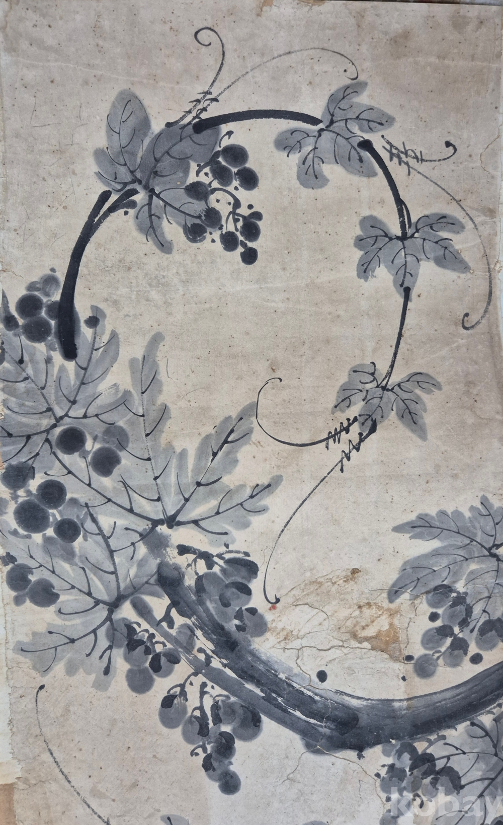 원래 10폭 병풍 작품 연결 포도 작품이나 오래되어 서너점 훼손되고 남은 작품이라 하셨으며