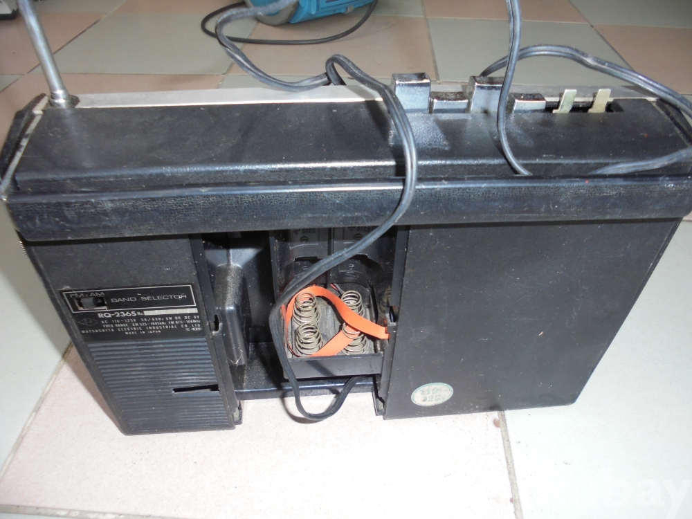 오래된 무거운 고급품 파나소닉 카셋트 라디오나 누르는손잡이가 2개없고 뒷면 후라시약 넣는덮개가 없어진 도란스꽂으면 웅소리만나는