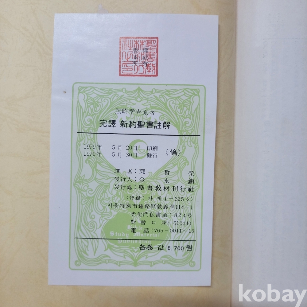 [천원경매] (黑崎幸吉) 완역 신약성서주해 / 바울소서신, 고린도전후서 / 1979년 초판본 ; 많은 입찰 바랍니다. / 서고위치 : 코베이06