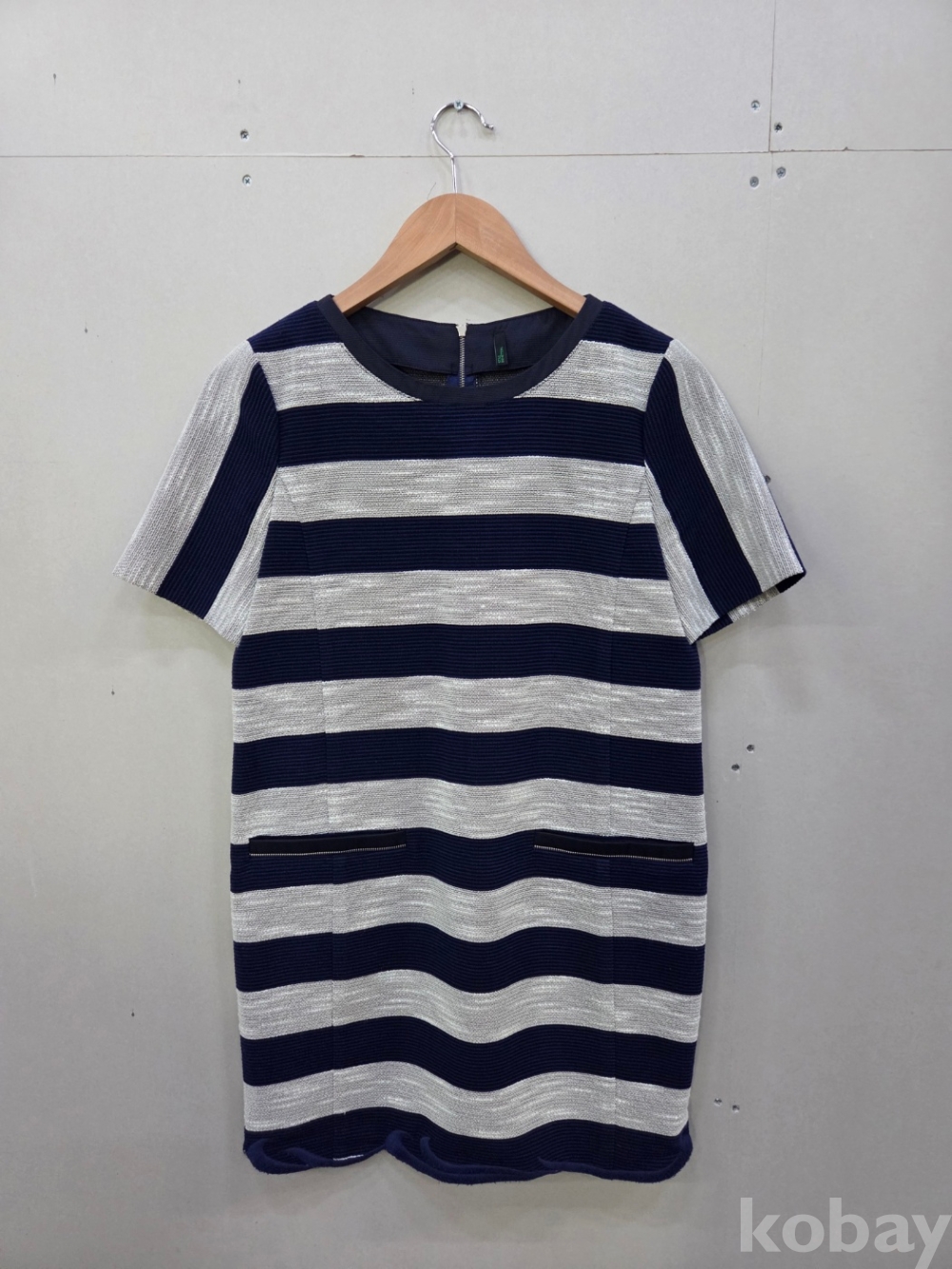 [천원옷장] #01 베네통(BENETTON) 여성 네이비 실버 스트라이프 미니 원피스 하객룩 오피스룩 55