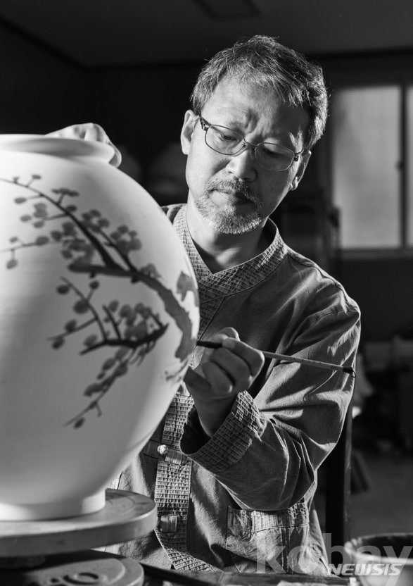 백산帛山 권영배 도예가의 作品 백자다관 白磁茶罐 < 도예가 수결 >