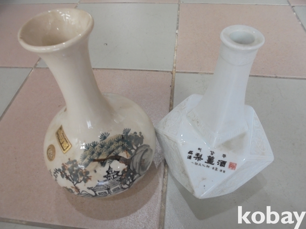 인간문화재가만든 이강주병으로 백자8각면에 에술적인 형태의 주병과 용인민속촌 술집에서 사용하다나온