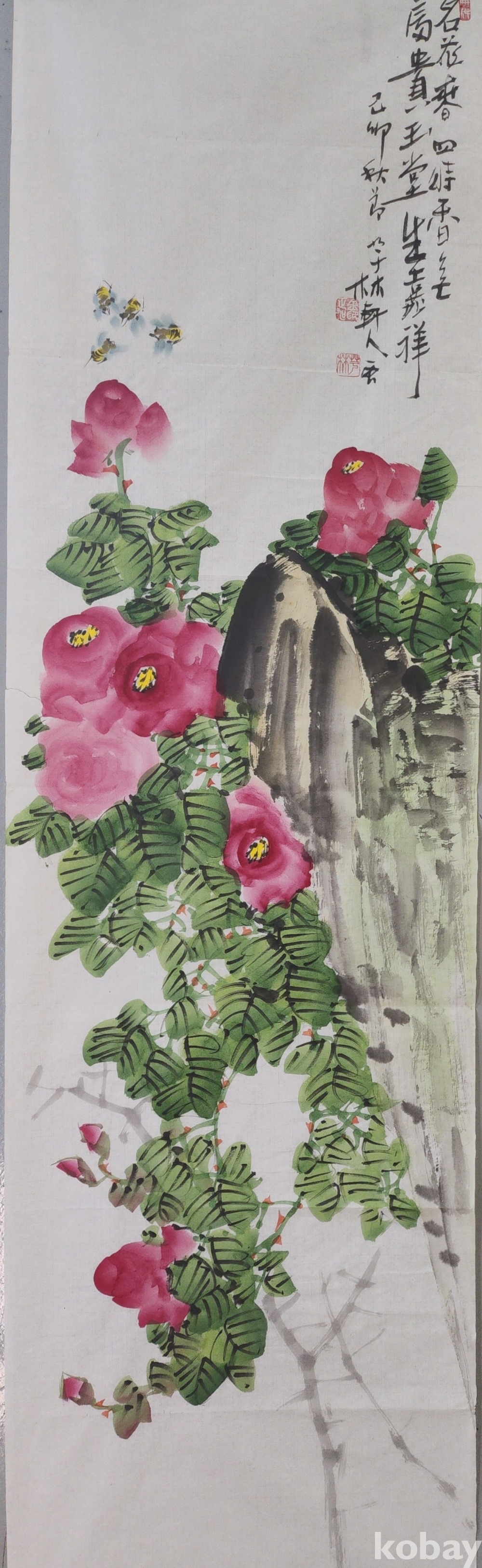 대한민국 미술대전 심사위원 역임하신 우림 김정욱 (芋林 金正旭) 作 화조 1/2 절지입니다,