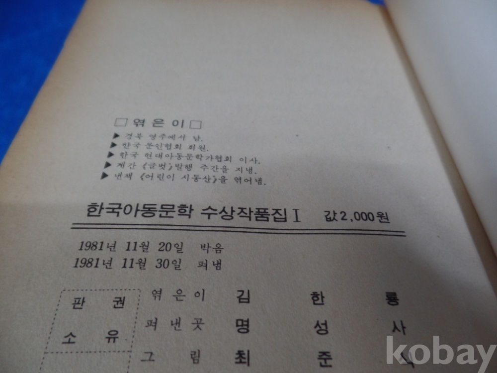 한국아동문학상 수상작품,,,김한룡역자,,,81년