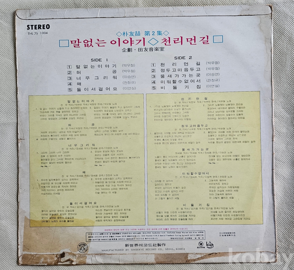 자켓상태 | EX : 약간의 마모, 모서리 찢김 존재 | 음반상태 | G : 눈에 띄는 스크래치, 튐 또는 노이즈 발생 | 발매정보 | 초반 | 가사지여부 | 무 |