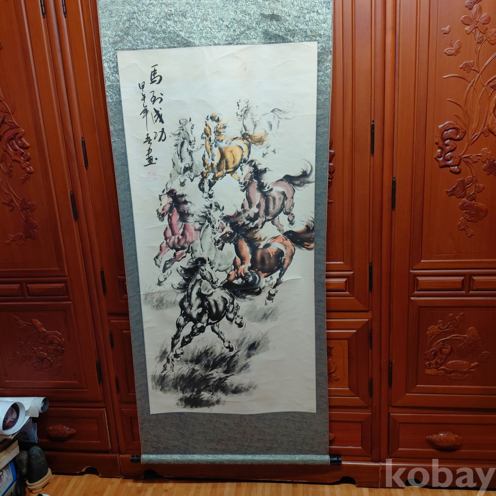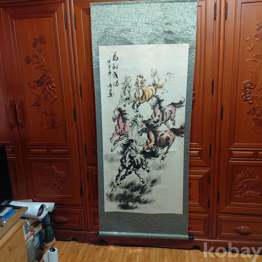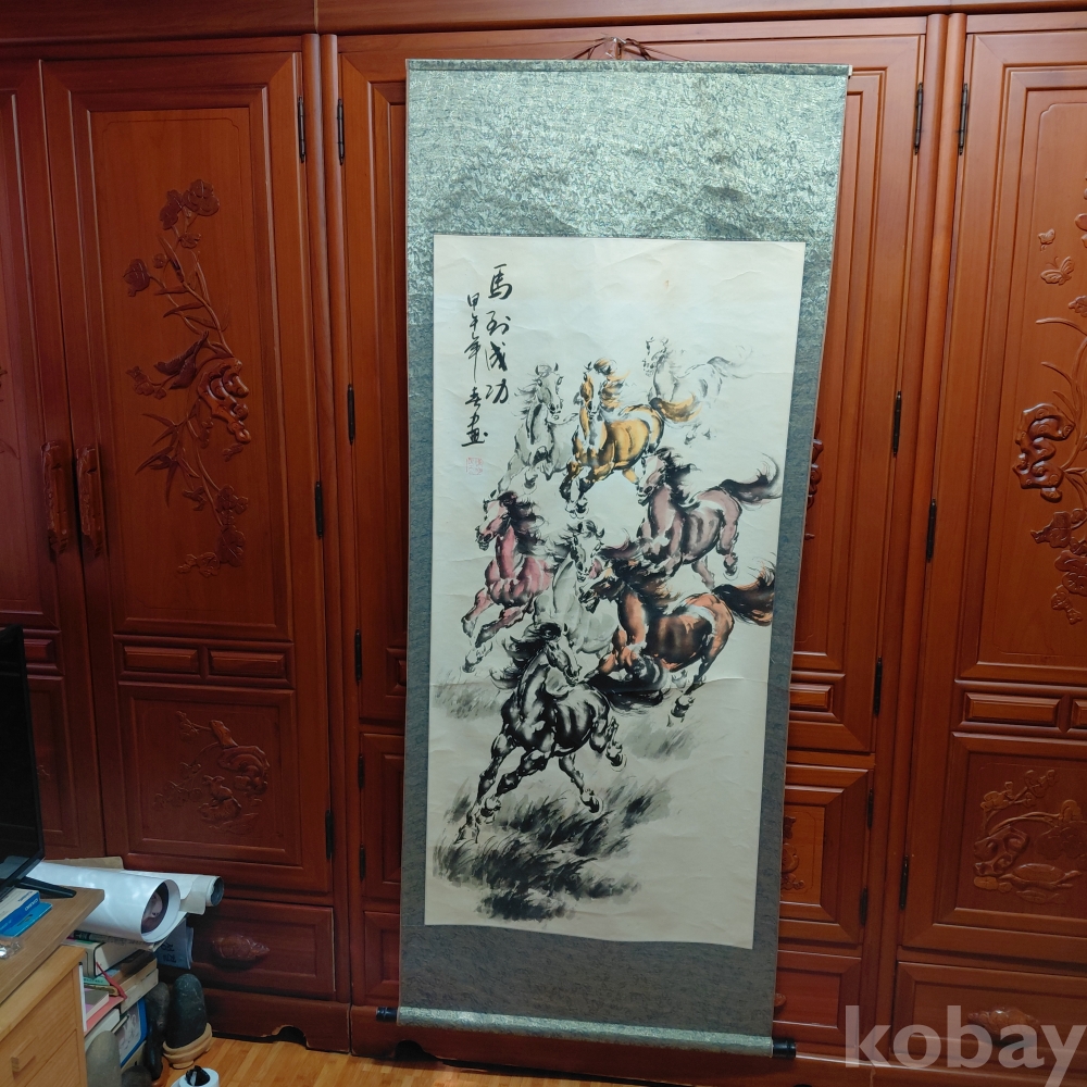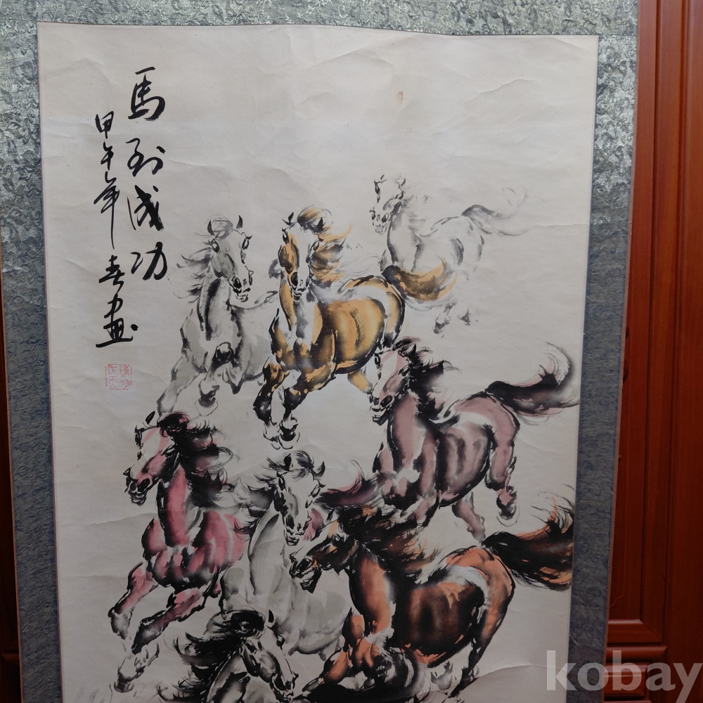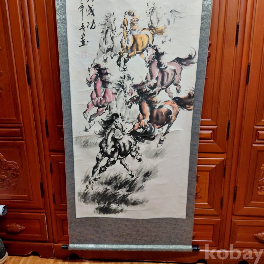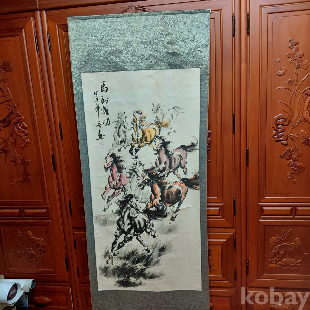 유명화가 선생님 작품 대형 팔마도 족자 (낙인ㆍ낙관참고 하세요)