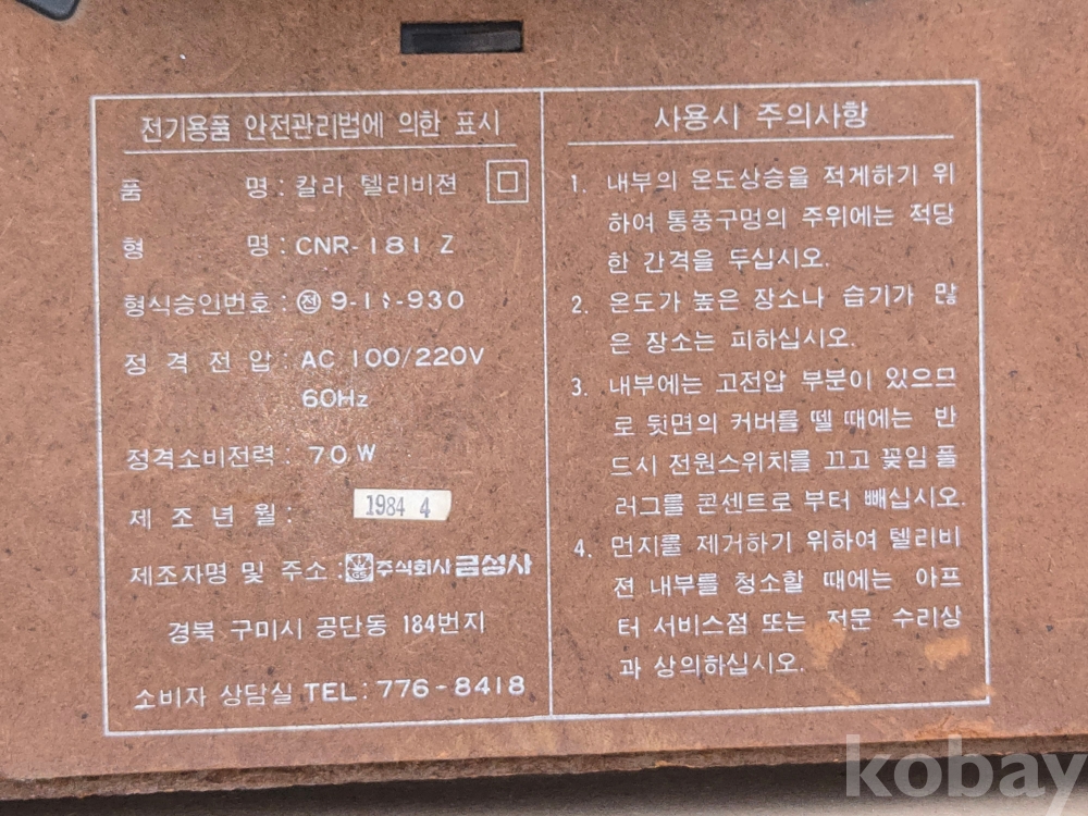 금성사 = 골드스타 HITEK 텔레비전 = 1984년제조