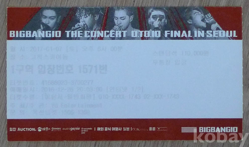 2016년 아이돌 가수 빅뱅 콘서트 입장권