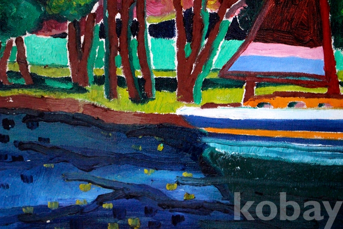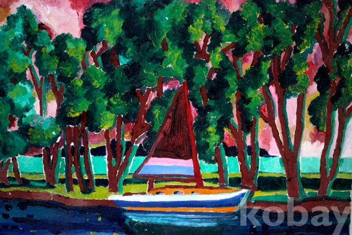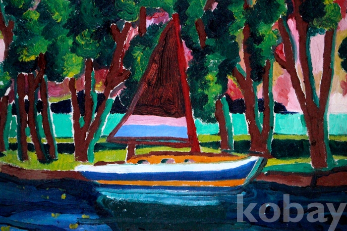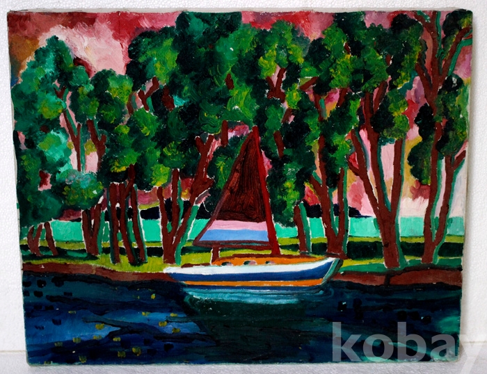 ( 유화) 작가미상의 돗단배가 있는 강가의 풍경 (50.5 x 41)