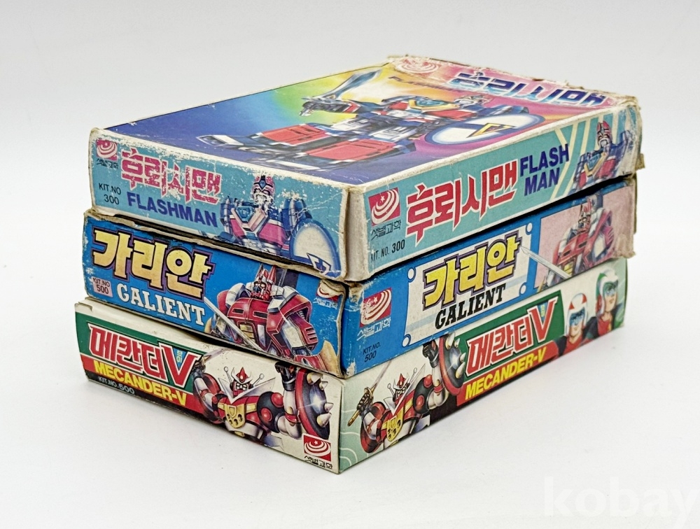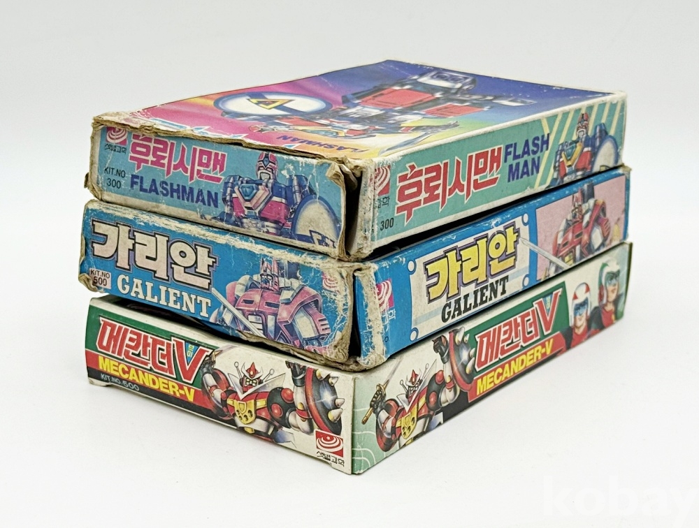 상품설명 | 1. 후뢰시맨 / 11 x 17 cm / 박스 낡음 2. 가리안 / 11.5 x 17 cm / 박스 낡음 3. 메칸더V / 11.2 x 17.5 cm 총 3점. | ||