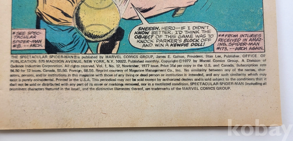 물 품 명 | the Spectacular SPIDER-MAN / Vol.1 #12 Nov. 1977 / MARVEL COMICS GROUP / 미국 |