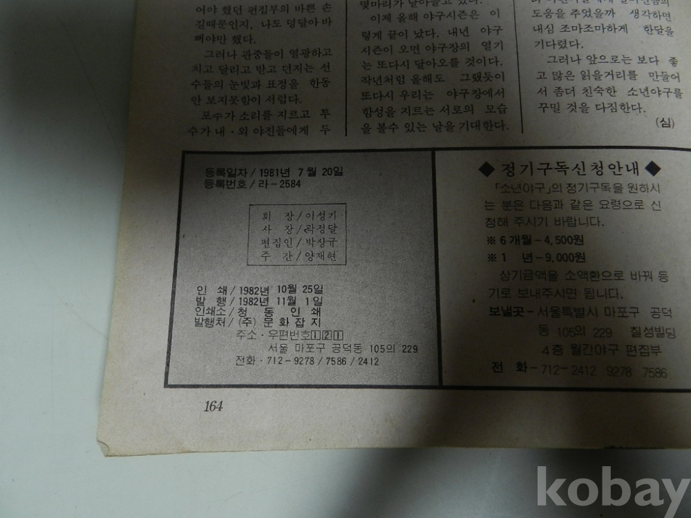 82년 프로야구 창단 년도 에 만든 소년 야구 어린이 잡지 입니다 프로 야구 등 야구에 관한 내용과 만화 많이 있고 추억 전시에 전시용으로 활용하면 좋을거 같습니다 이미지 처럼 상태 양호 하고 사용감 세월감 등 있을수 있습니다 이미지 참고 바랍니다