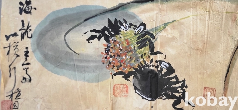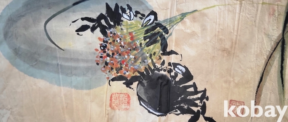 단원수결이보이는 조이에 채색 민물게 그림입니다,