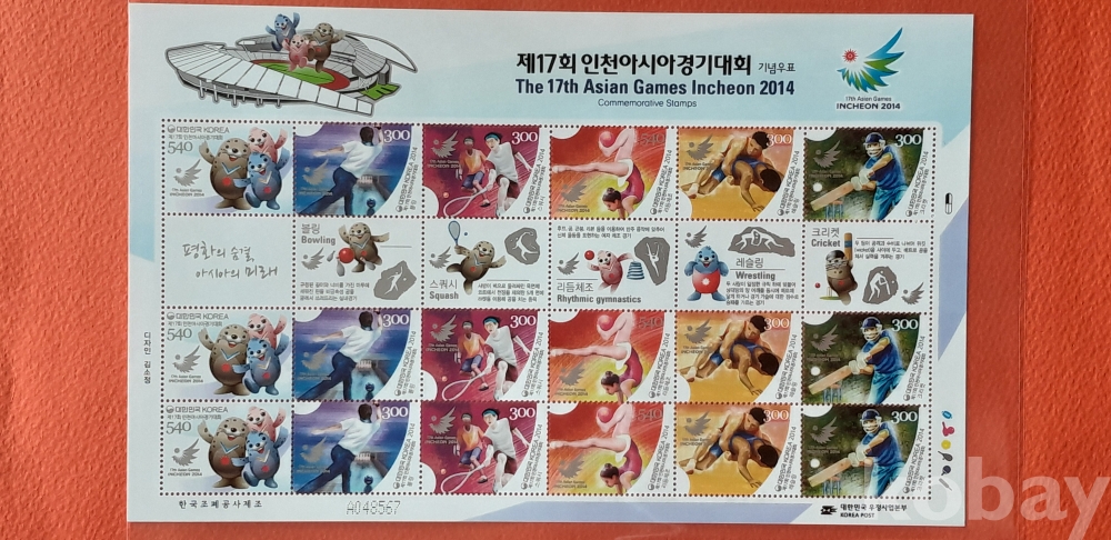 제17회 인천아시아 경기대회 18매 전지 입니다.