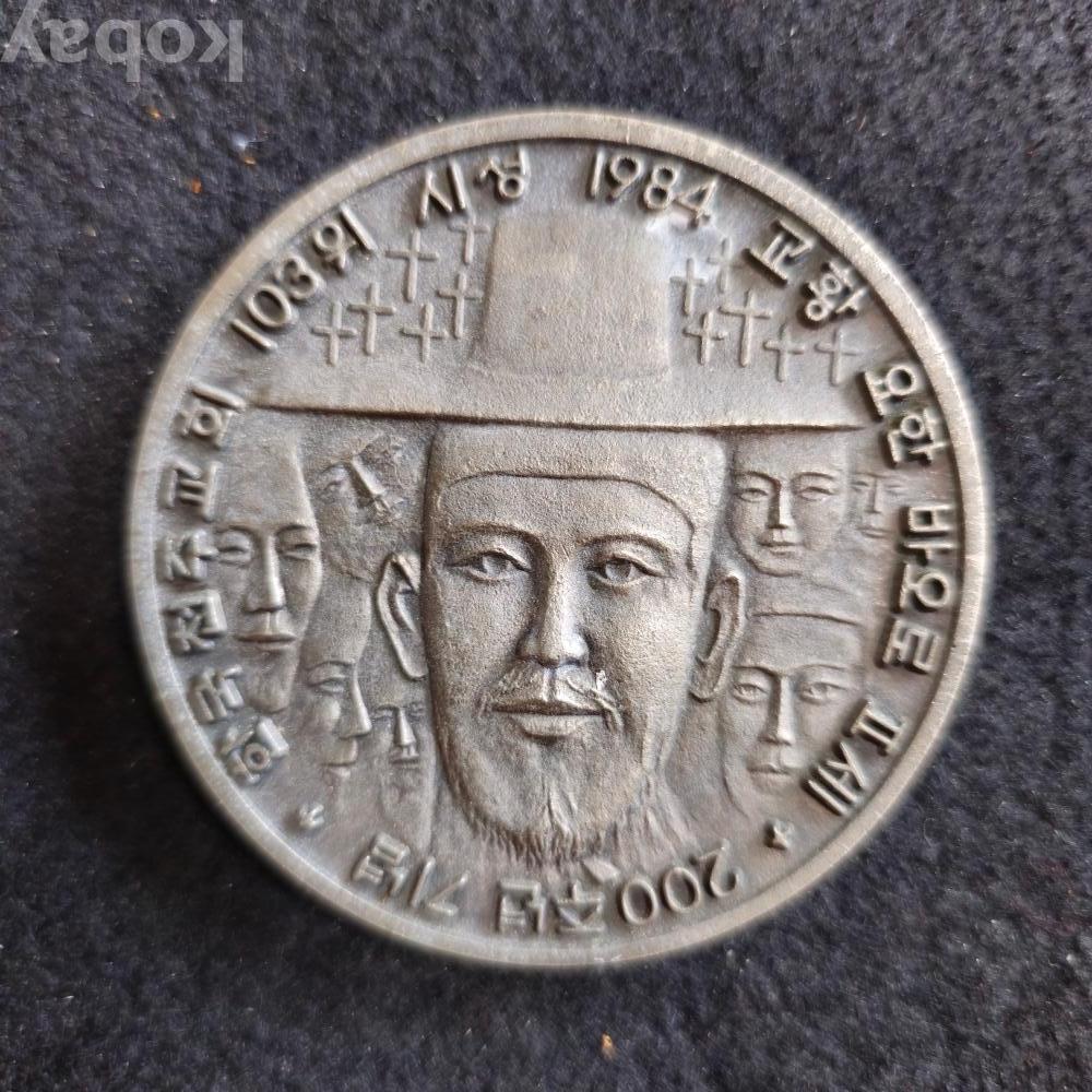 (((천주교자료/메달))) 1984년 한국천주교회 103위 시성 * 교황 바오로 2세 * 200주년기념 메달