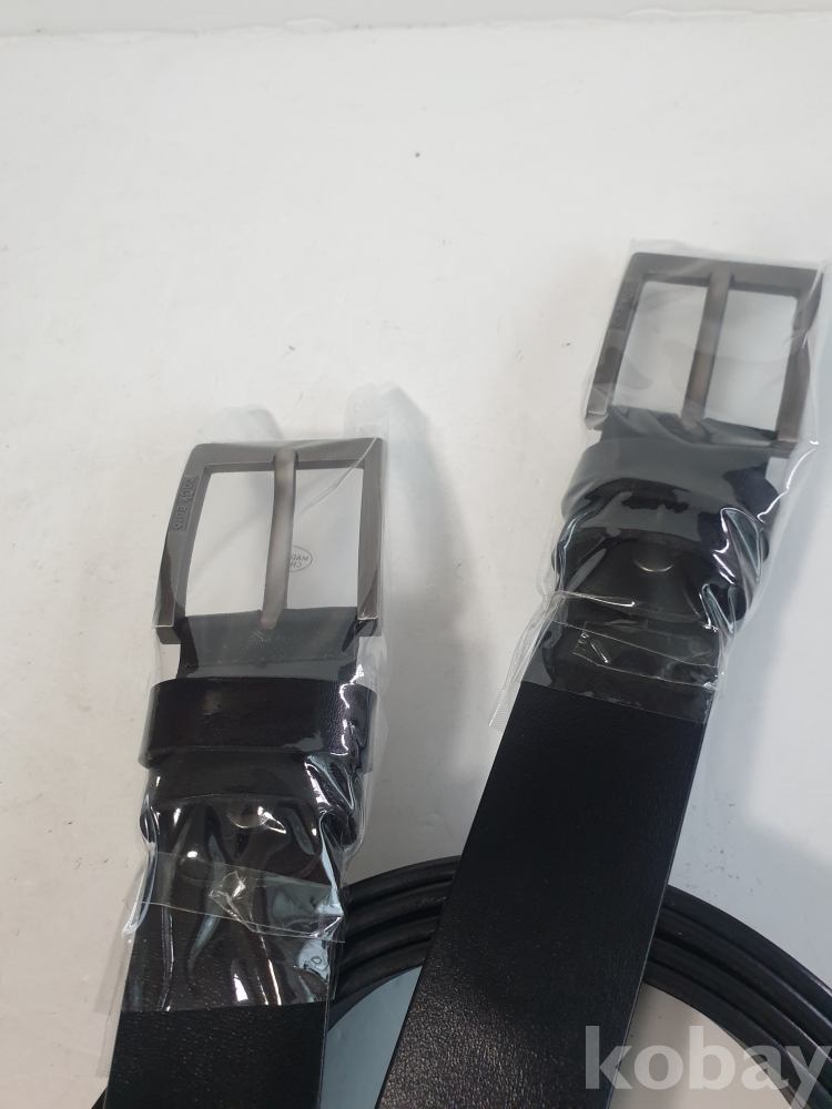 [천원경매] 10-035 남성용 검정색 벨트(2개 일괄, 버클빼고 124cm)