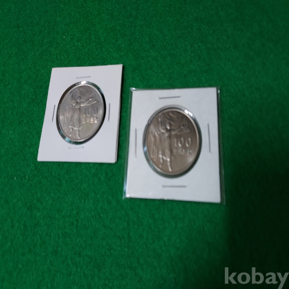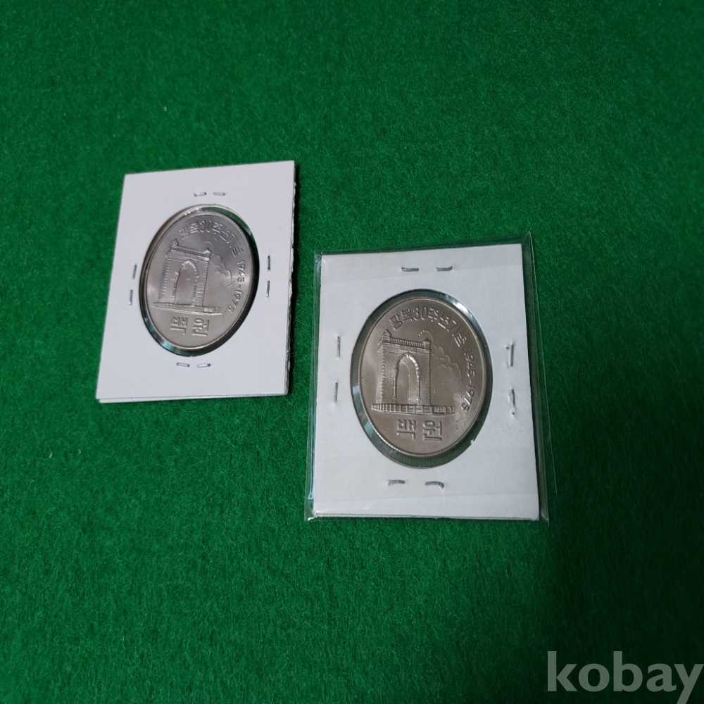 한국은행 1975년 광복30주년기념 100원화 2매 미사용