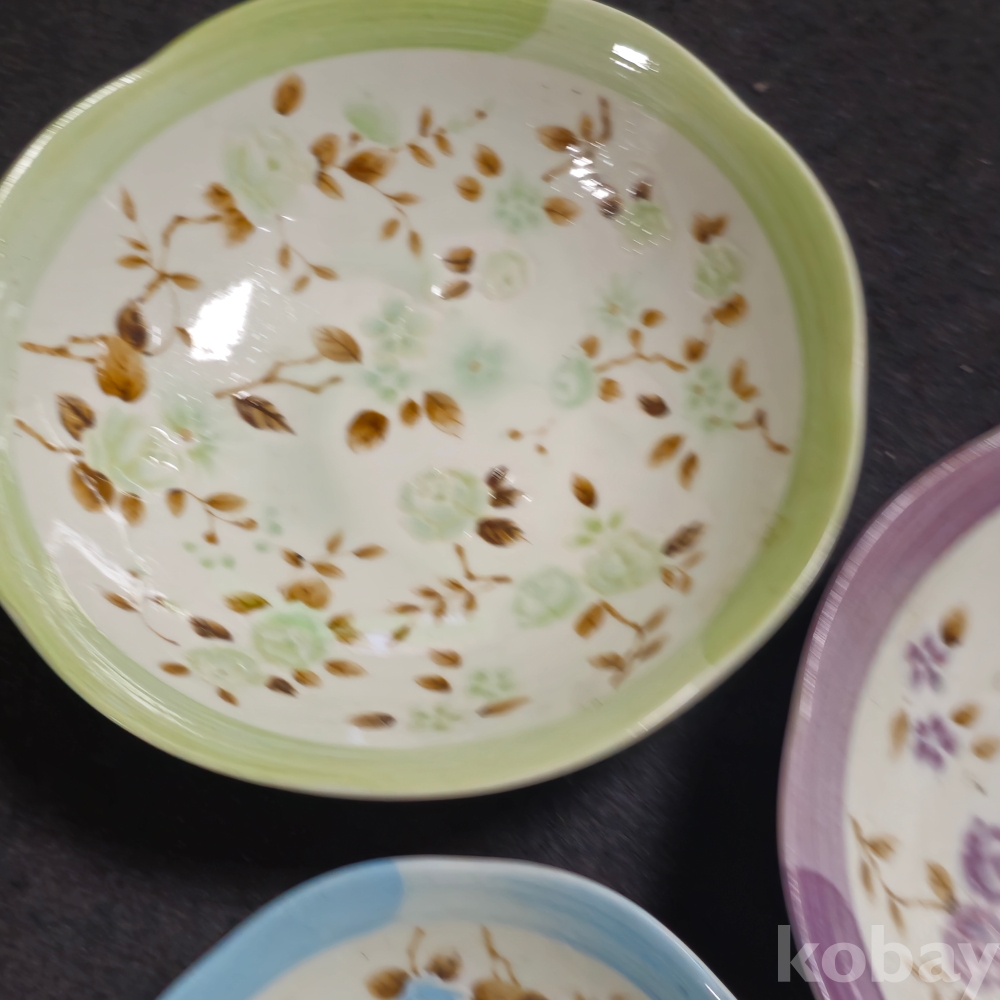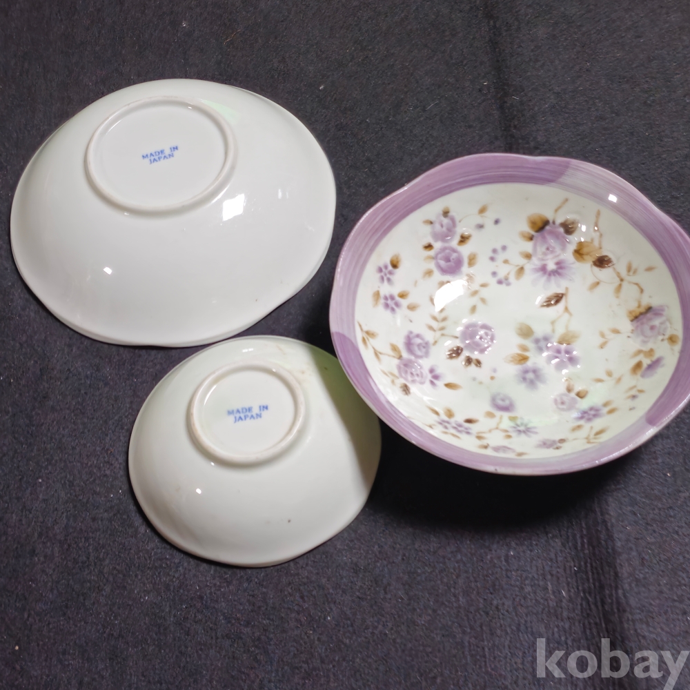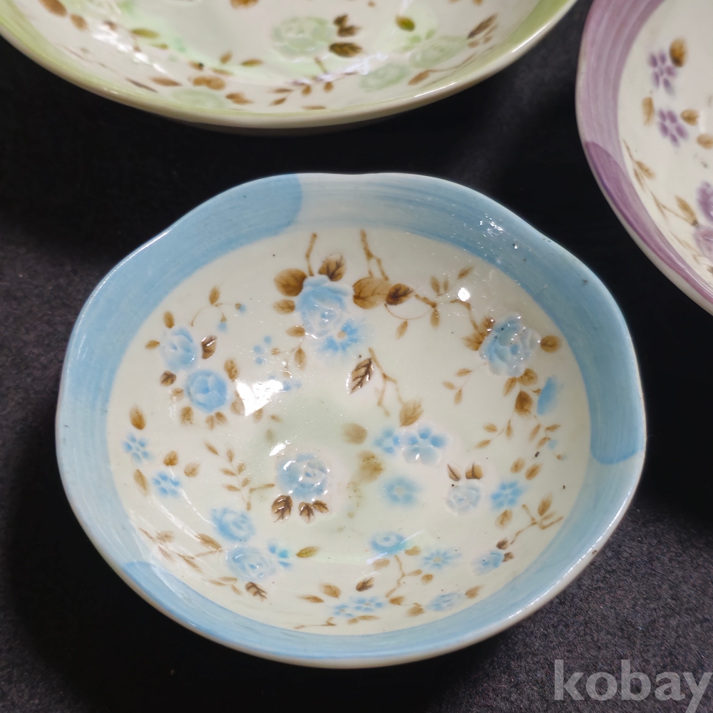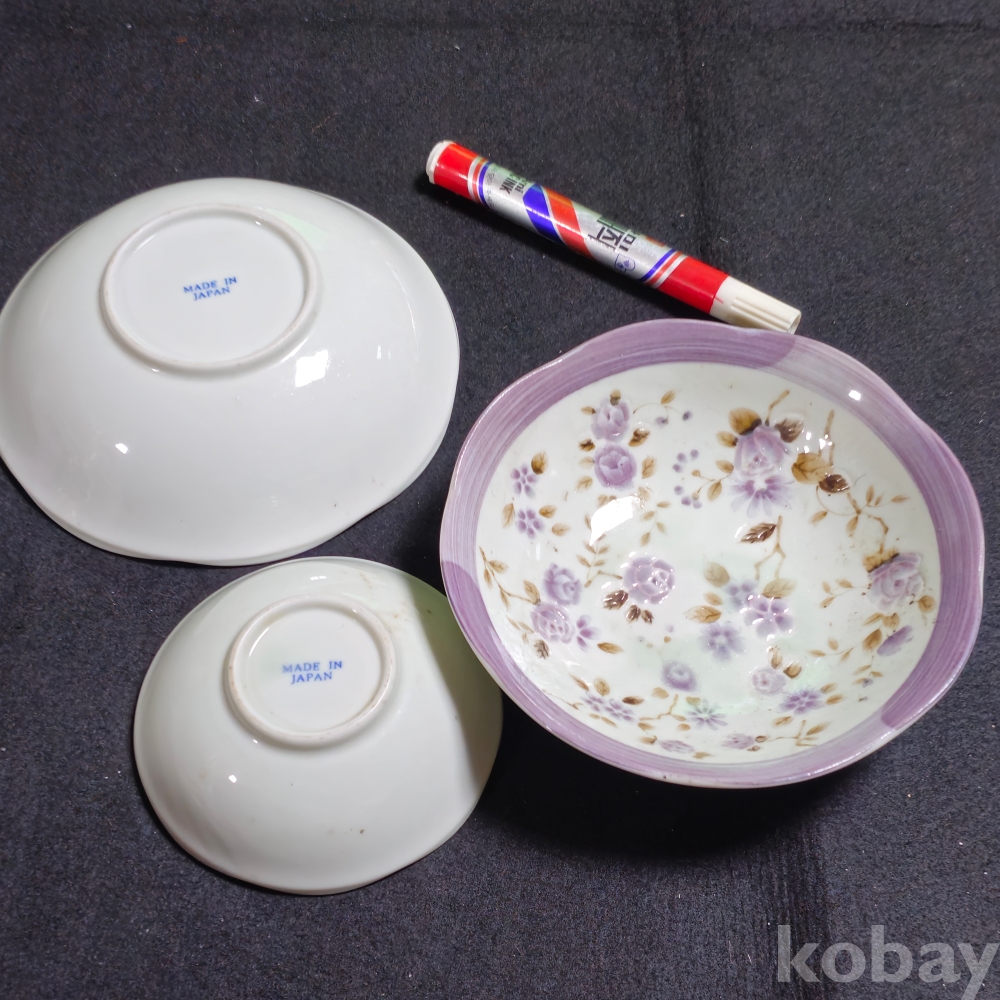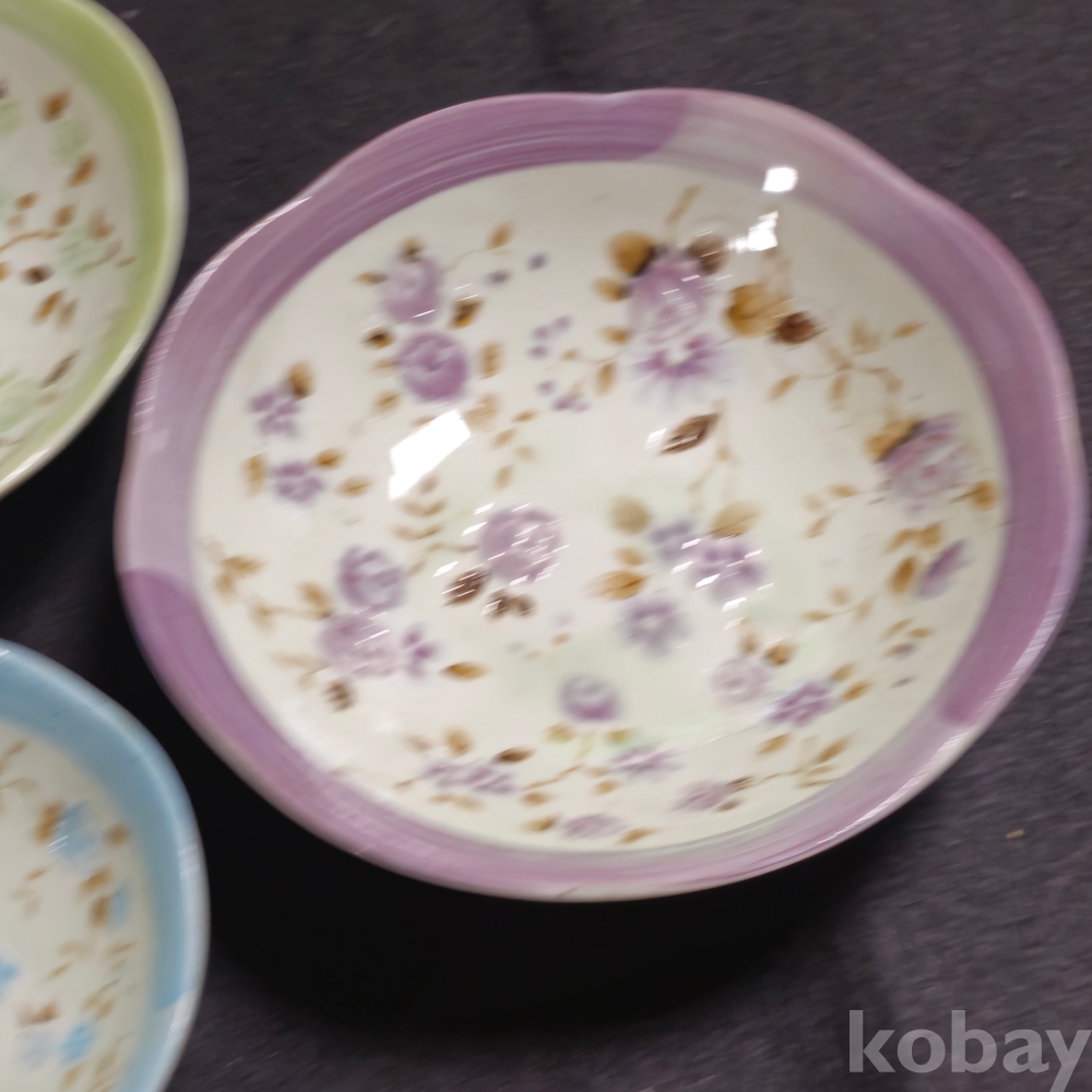 (((도자기접시))) 오래전 일본에서만든 꽃문양이 이쁜 오목접시 2종 3개