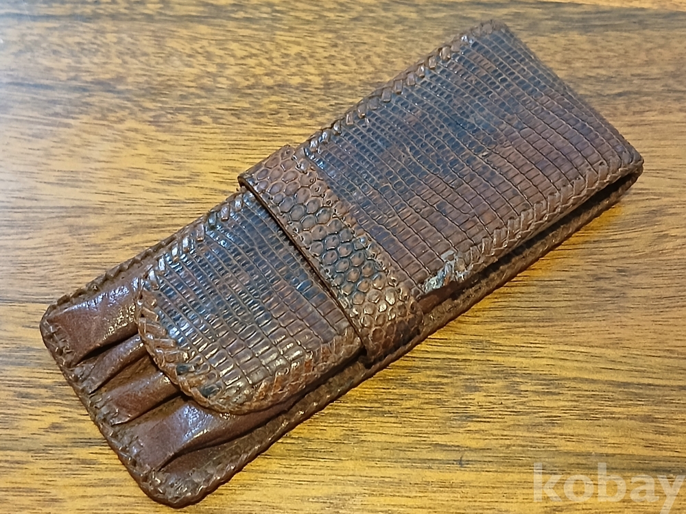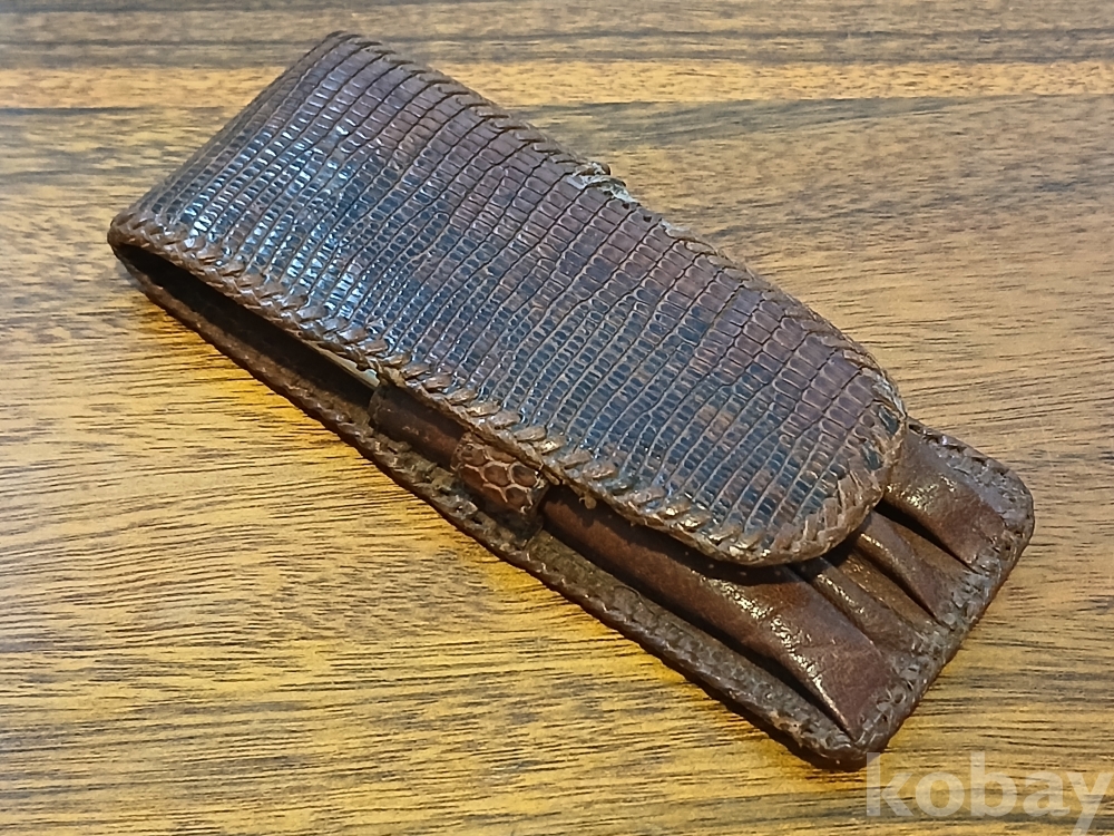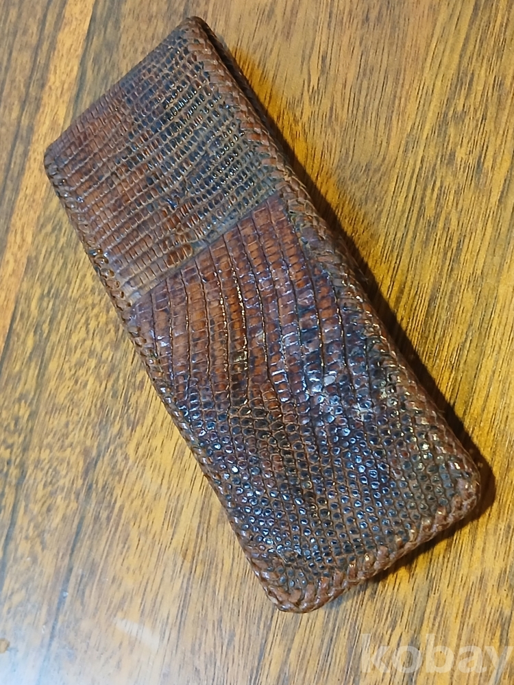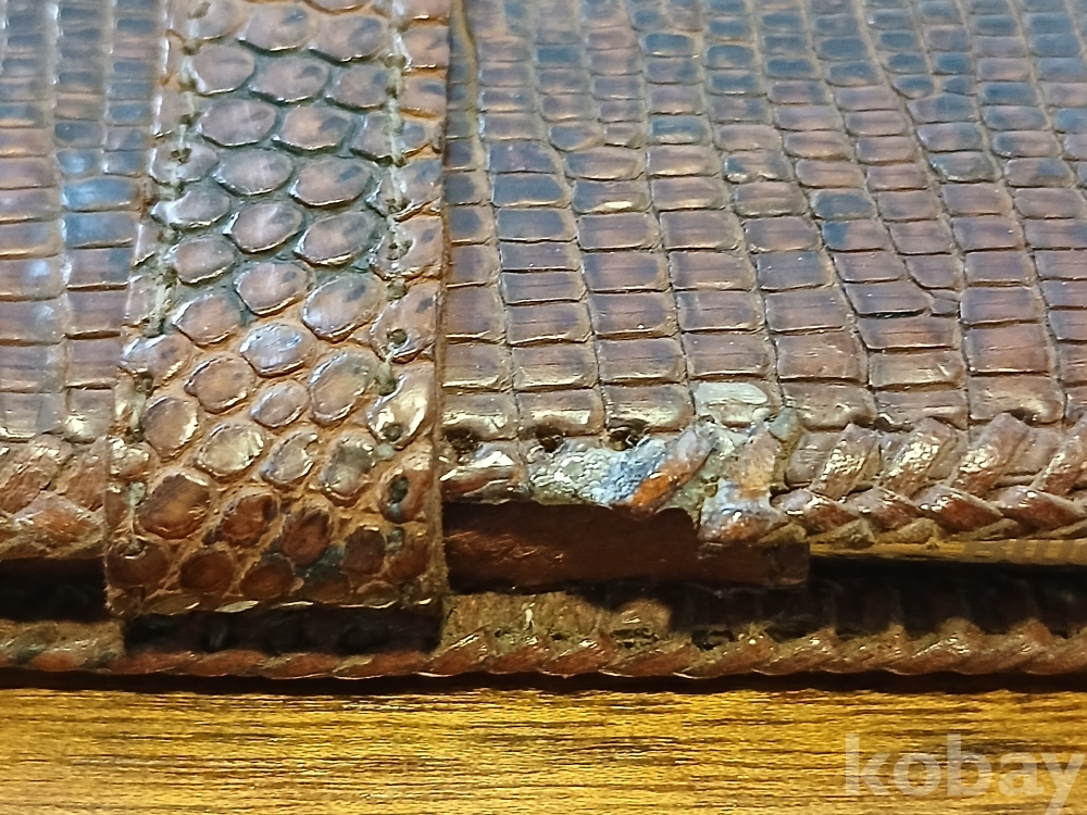 최고품질의 리얼 악어가죽입니다. 덮개 테두리부 가죽일부 손상..