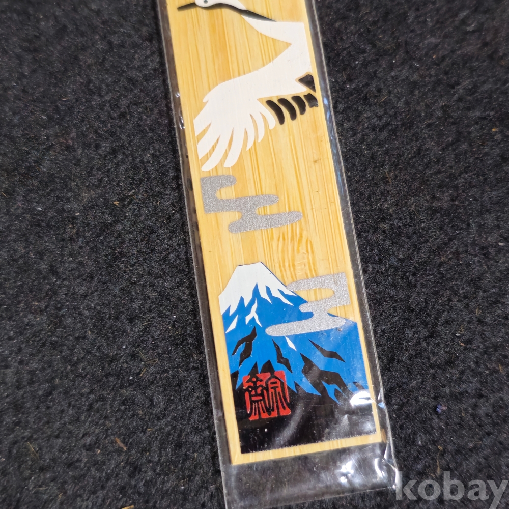 (((관광기념품/책갈피))) 일본관광기념 鶴모습과 후지산전경있는 책갈피 (미사용)