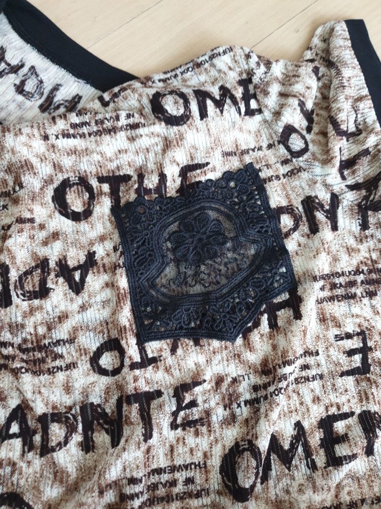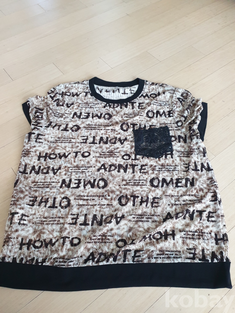 [천원경매] 10-259 여성용 자수 포켓있는 반팔 티셔츠(신축성 많이 있음, 가슴단면 49cm, 길이 58cm)