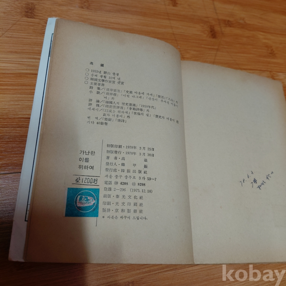 고은시인 가난한 이를 위하여 1978년 한진출판사 발행 올려드립니다