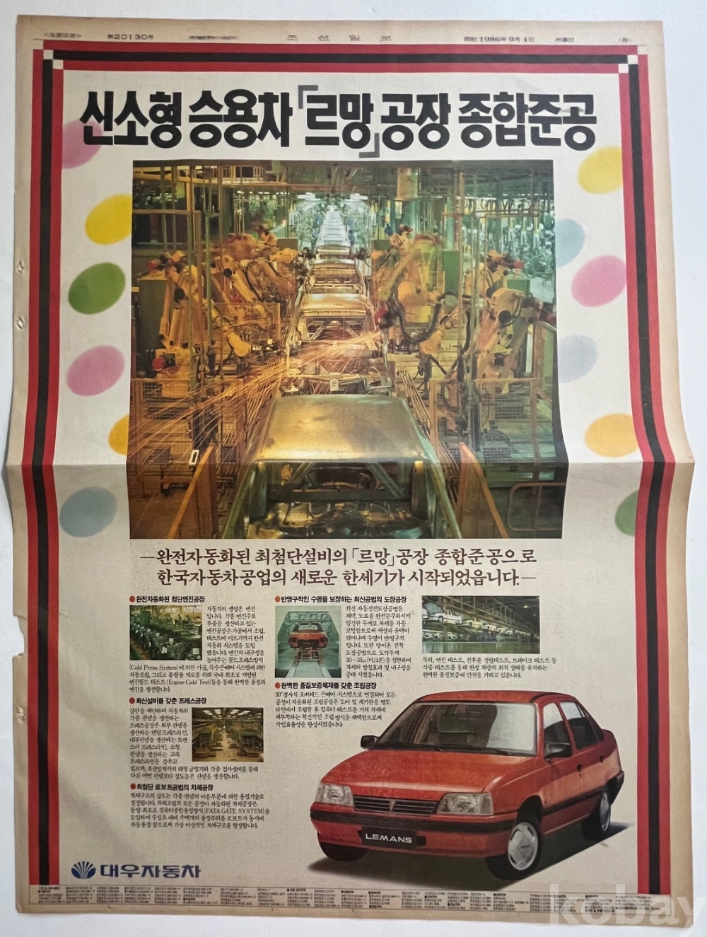 르망 자동차 광고가 실린 조선일보 낱장입니다.