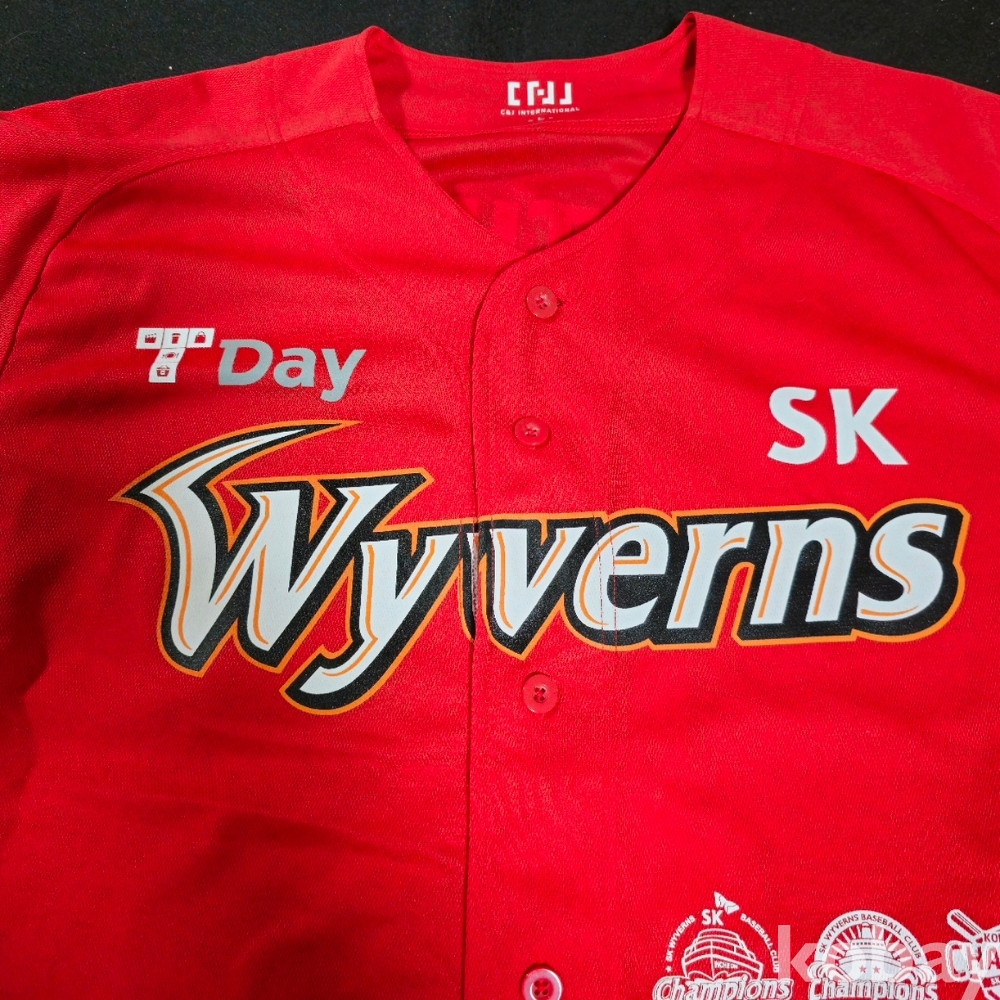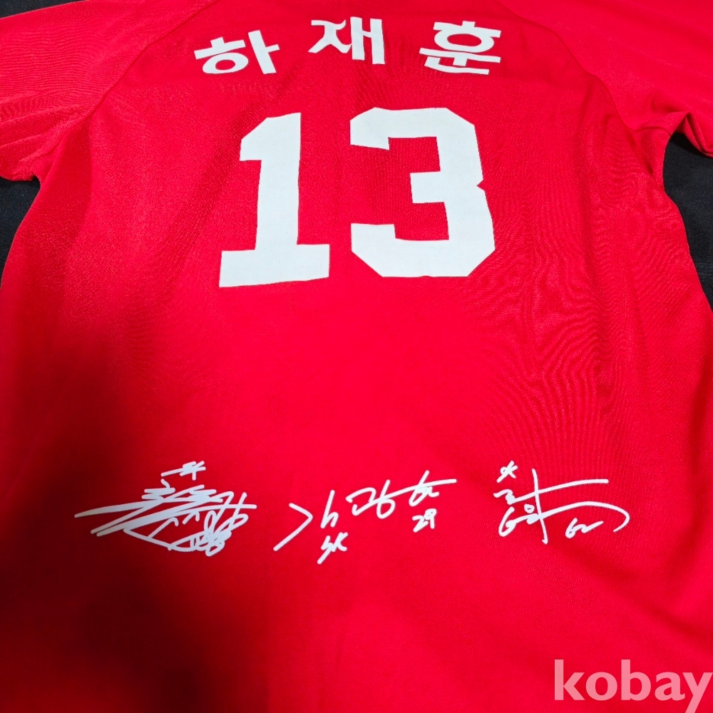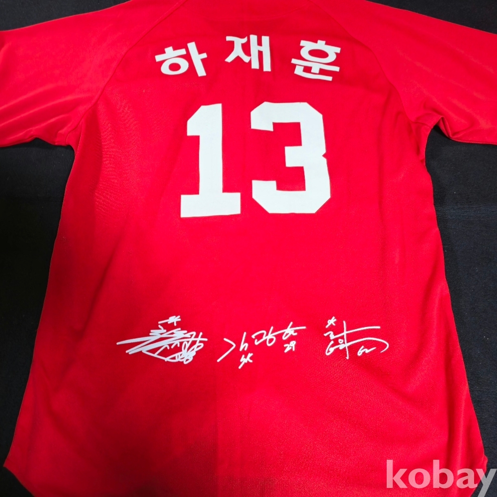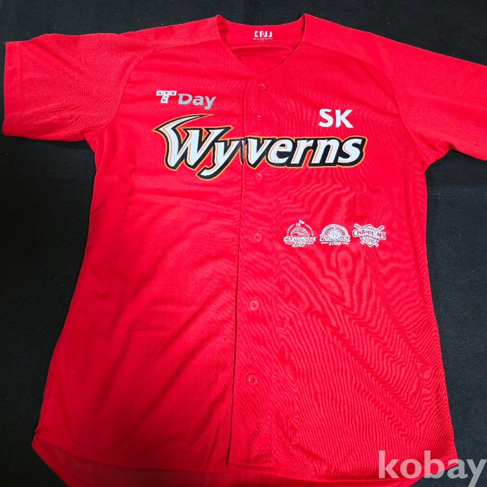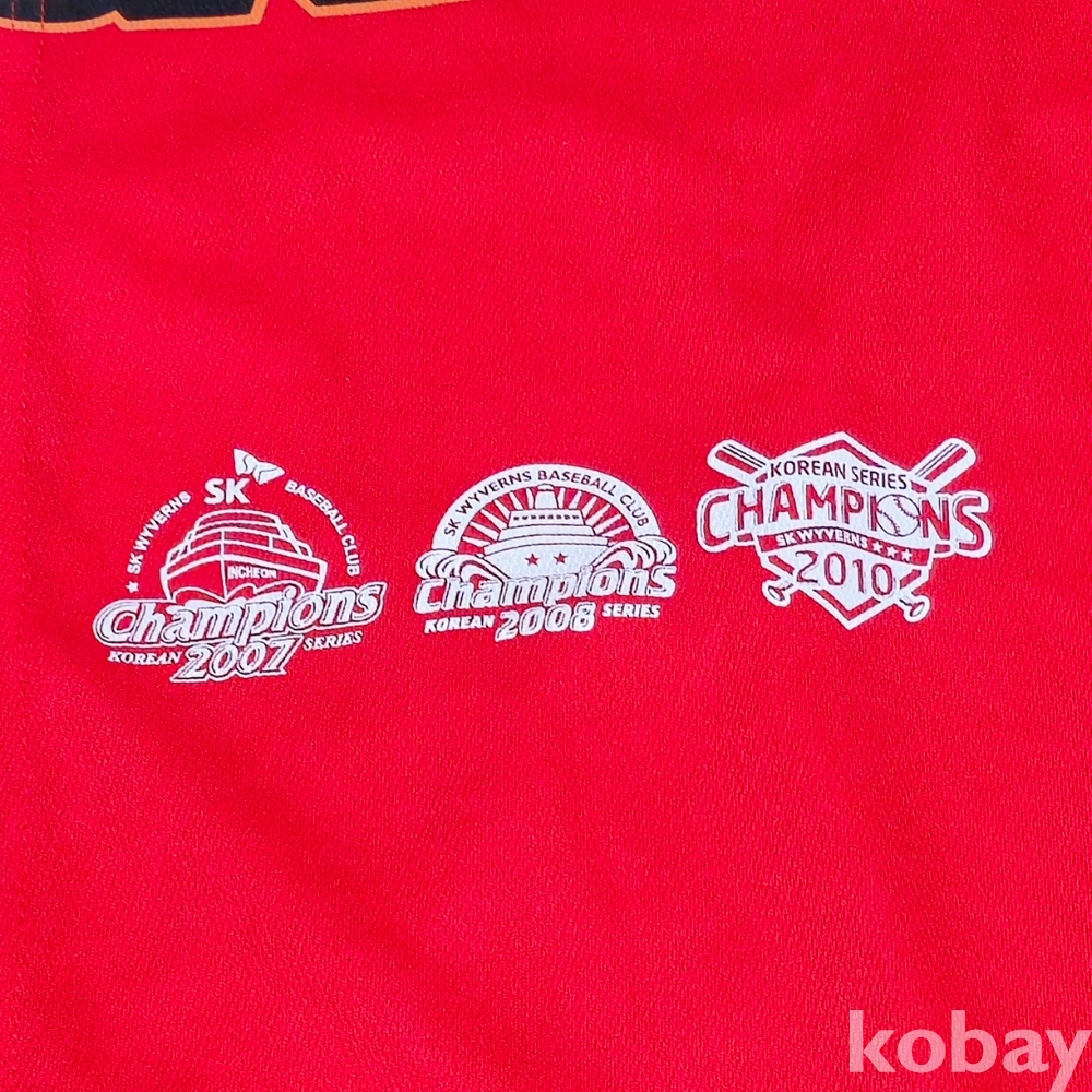 (((프로야구자료))) 추억의 SK 와이번스 2007/2008/2010 우승엠블렘이있는 하재훈유니폼상의 (최정/김광현/한동민 인쇄싸인)(SIZE L)