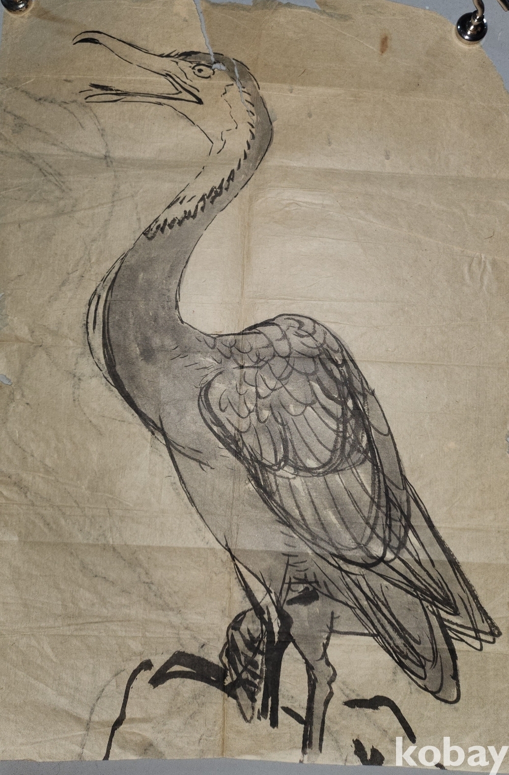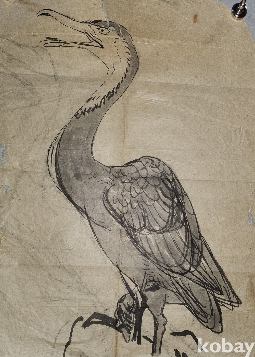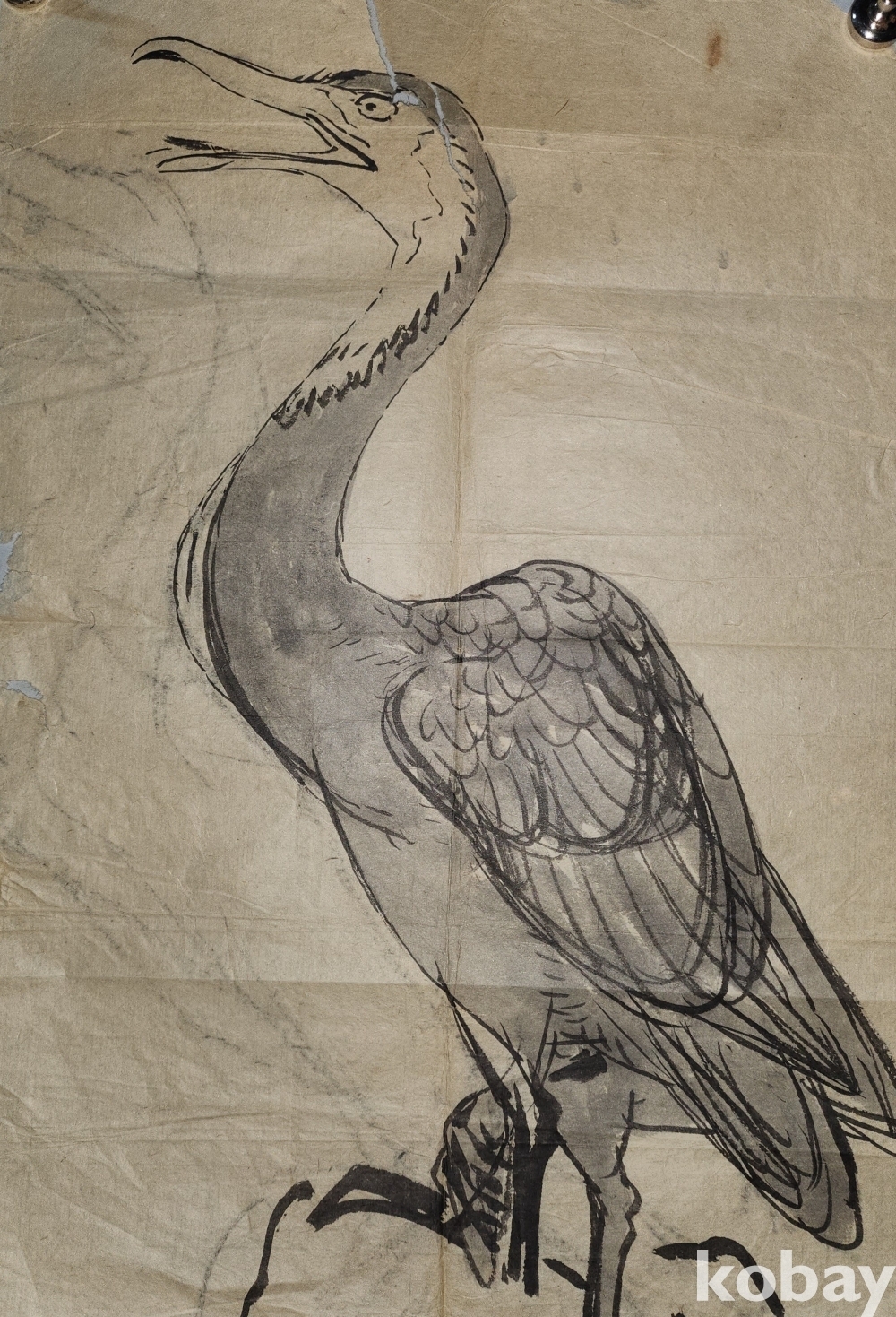 오랜 세월이 보이는 종이에 채색된 새그림입니다,