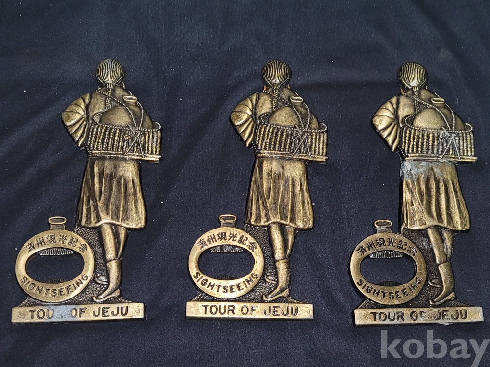 빈티지 제주도 관광 기념 제주도 여인 동 병따개 3개 일괄입니다.