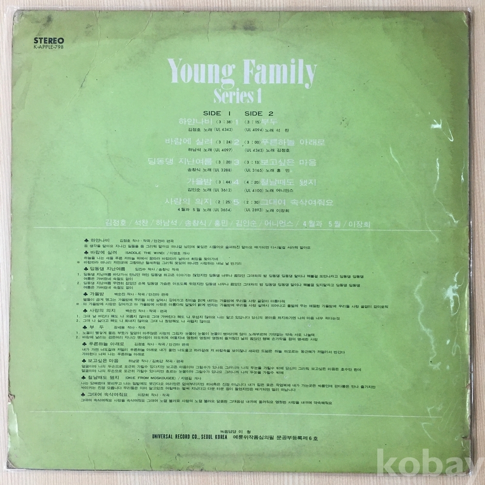 ⊙ 1974년 / 유니버어살레코드 - K-APPLE 798