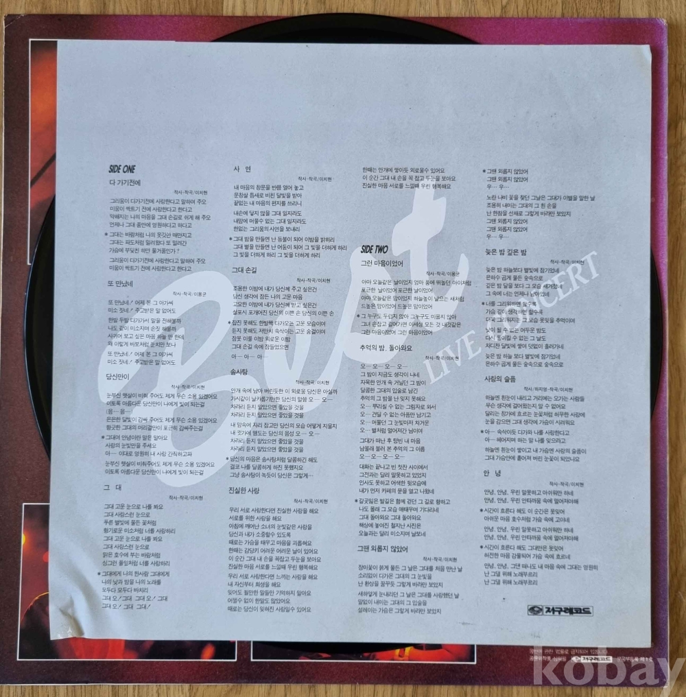 음반: B 앞뒷면 약한 연흔 및 스크레치 다수 (청음 보다는 수집 및 참고용 추천)