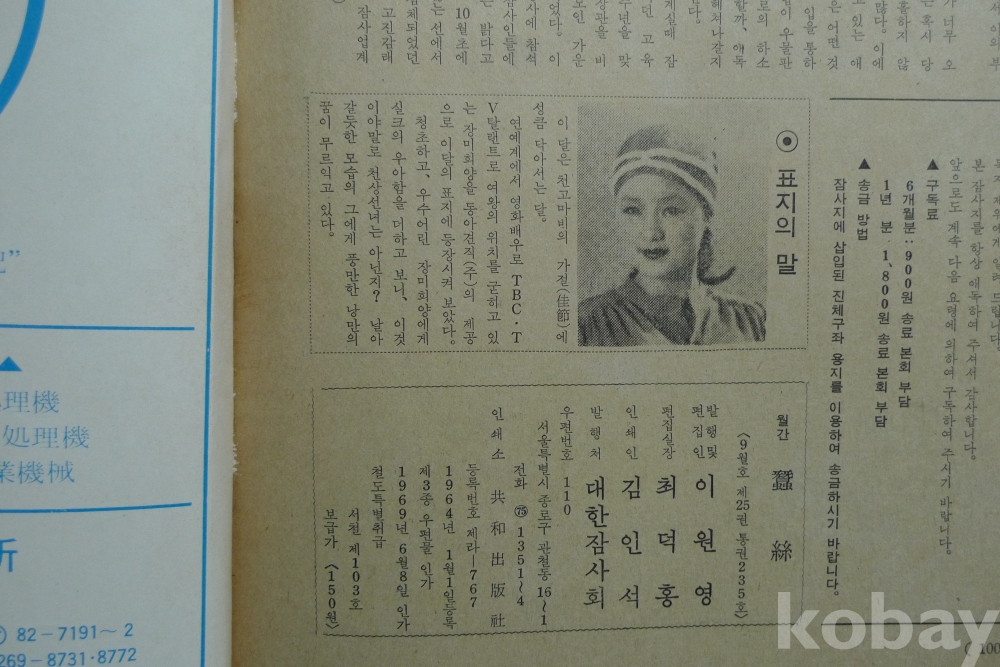 1978년 9월호 잠사 잡지 - 표지모델 영화배우 장미희 -