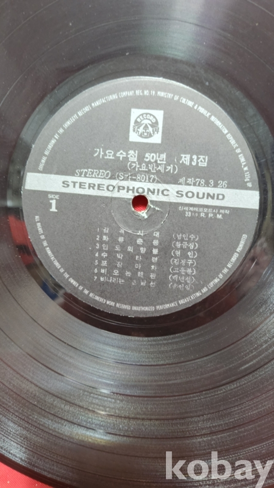 | 자켓상태 | VG : 주름, 접힘, 모서리 찢김 다수 | 음반상태 | VG : 생활 기스 다수, 가벼운 노이즈 존재 | 발매정보 | 알수없음 | 가사지여부 | 무 |
