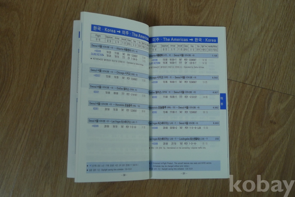 2009년 대한항공 국제선 여객 시간표 책자