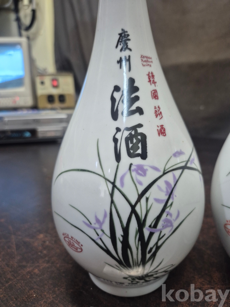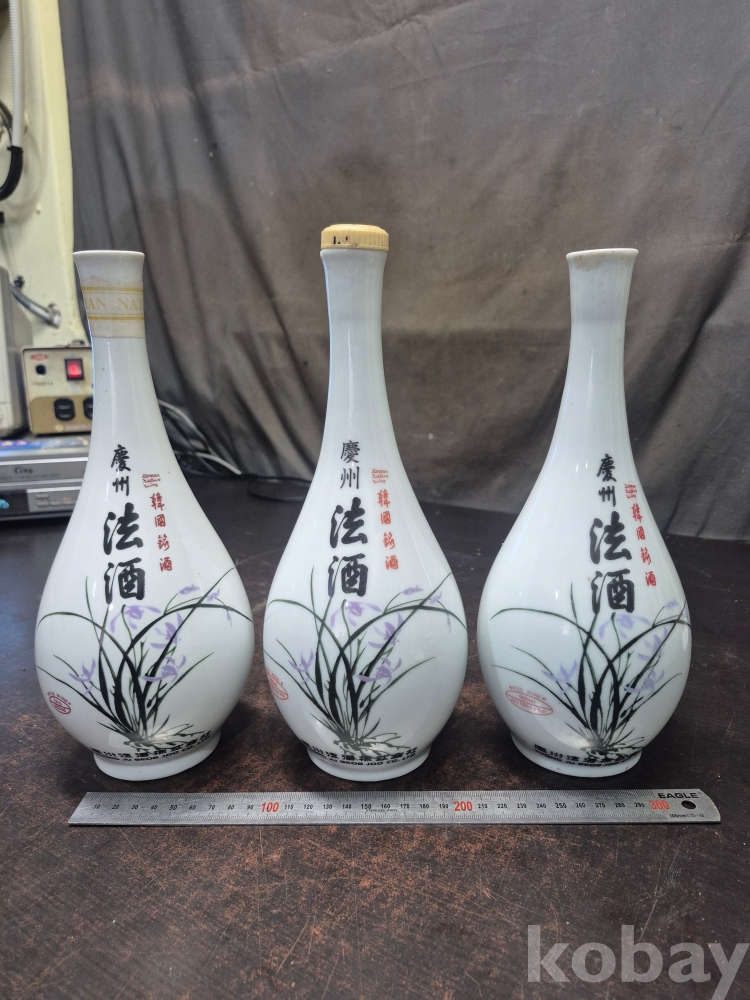 1990년대경주법주 도자기 술병 난과 꽃 문양 디자인 주병 3점 일괄 12*12*29