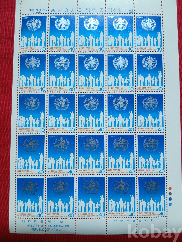 우표: 제 32차 WHO 서태평양 지역회의 기념 우표전집 (1981년 액면가 1000원)------미사용으로 상태 아주 양호 합니다