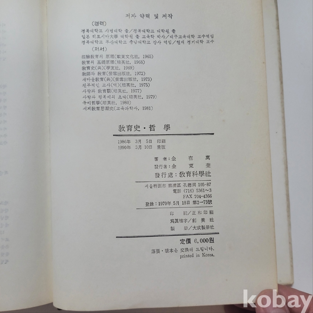 [천원경매] 교육사 철학 / 교육과학사 1990년 발행