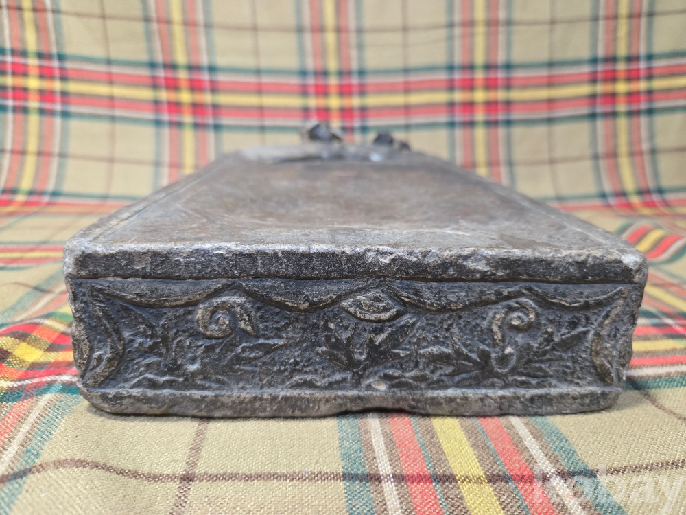국내에 현존하는 보물급 납석제 공예품들과 유사한 재질과 옆면의 당초문의 양각형태등으로 추정건데 고려시대의 것으로 추정하고 소장중이나 미감정품으로 등록합니다.