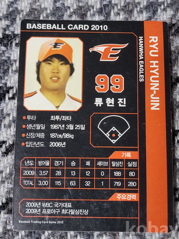 KBO가 공식카드를 발매하지 않던 2010년 해적판으로 발행되었던 희귀 프로야구 트레이딩카드 입니다.