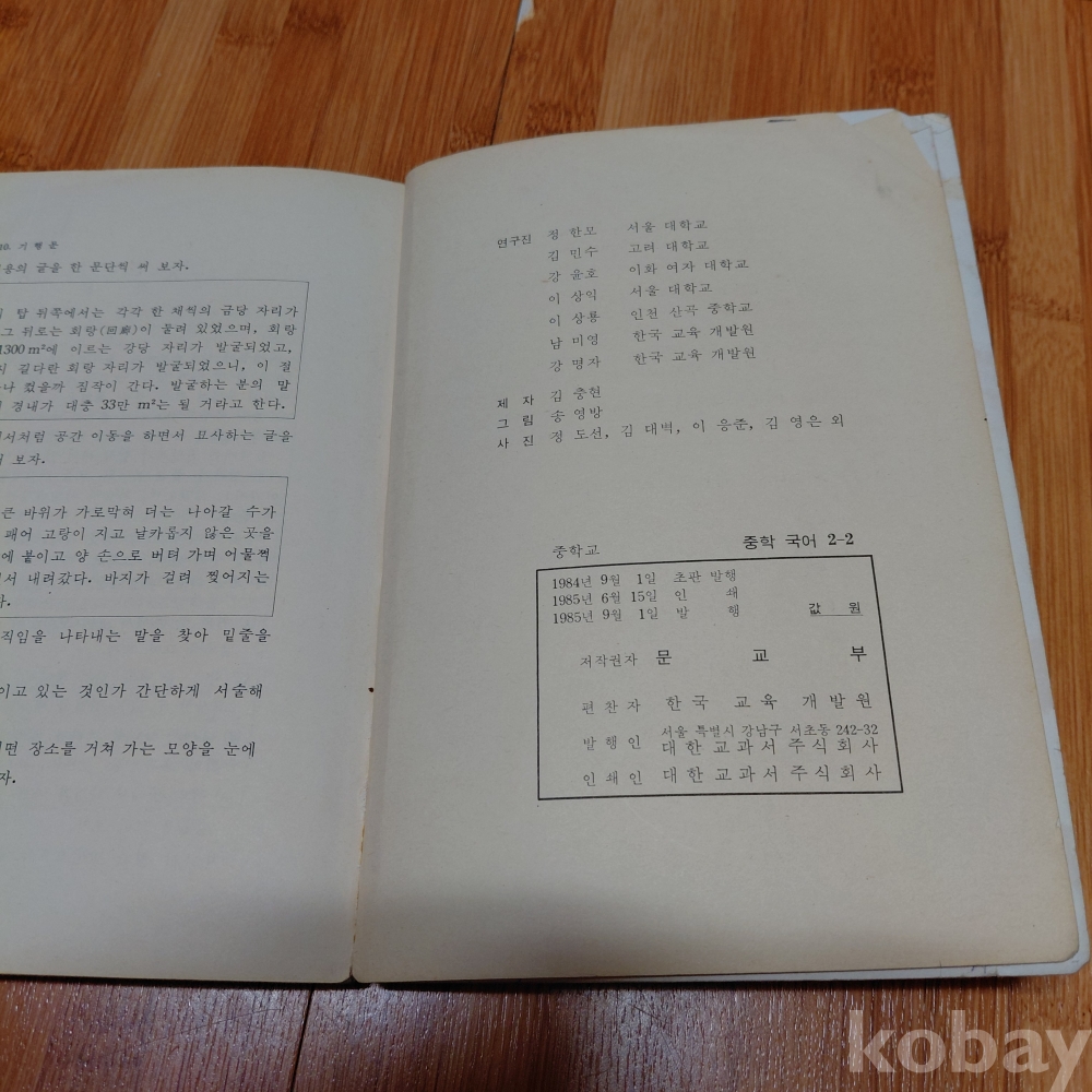 중학교 2ㅡ2 국어교과서 1985년 문교부 발행 올려드립니다