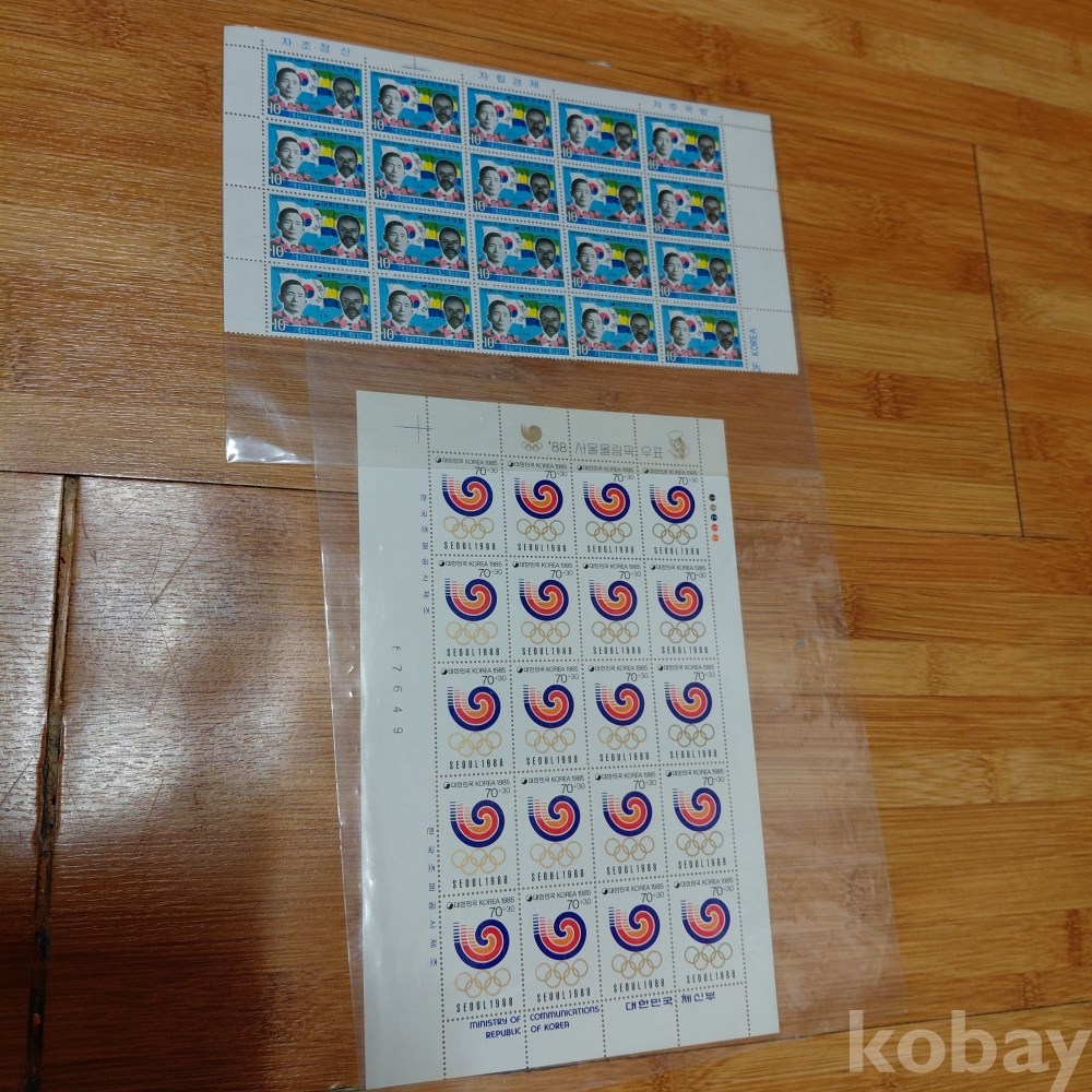 박정희대통령 우표ㆍ88서울올림픽 로고우표 전지우표 두장 일괄