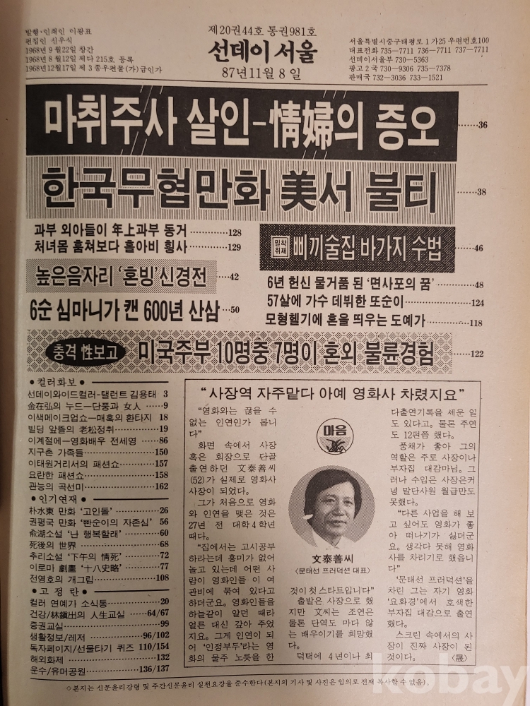 [추억의 주간지 시리즈] / [선데이 서울] / 1987.11.8일 / 표지 탤런트 조민수