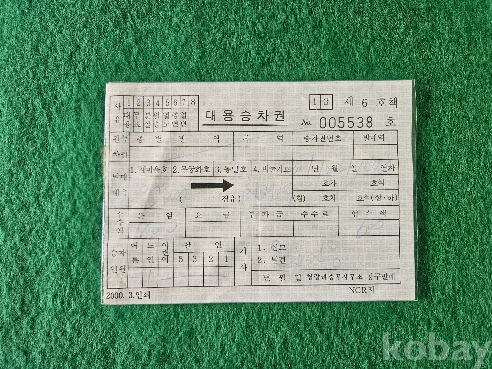 - 대용승차권은 철도청에서 전산표 발권이 어려둘 때 수기로 발행하던 표로 정식 표와 동일한 효력을 가졌습니다