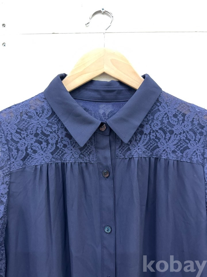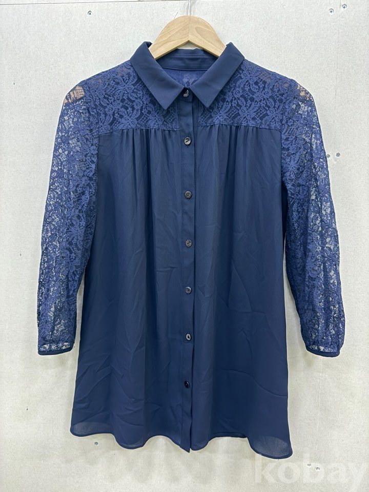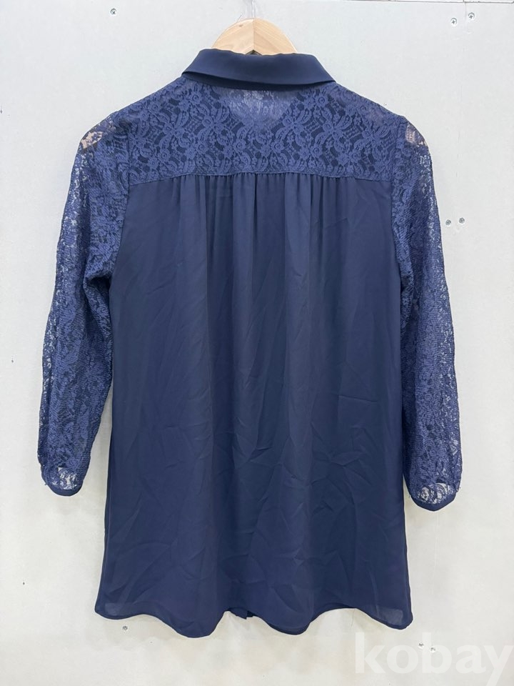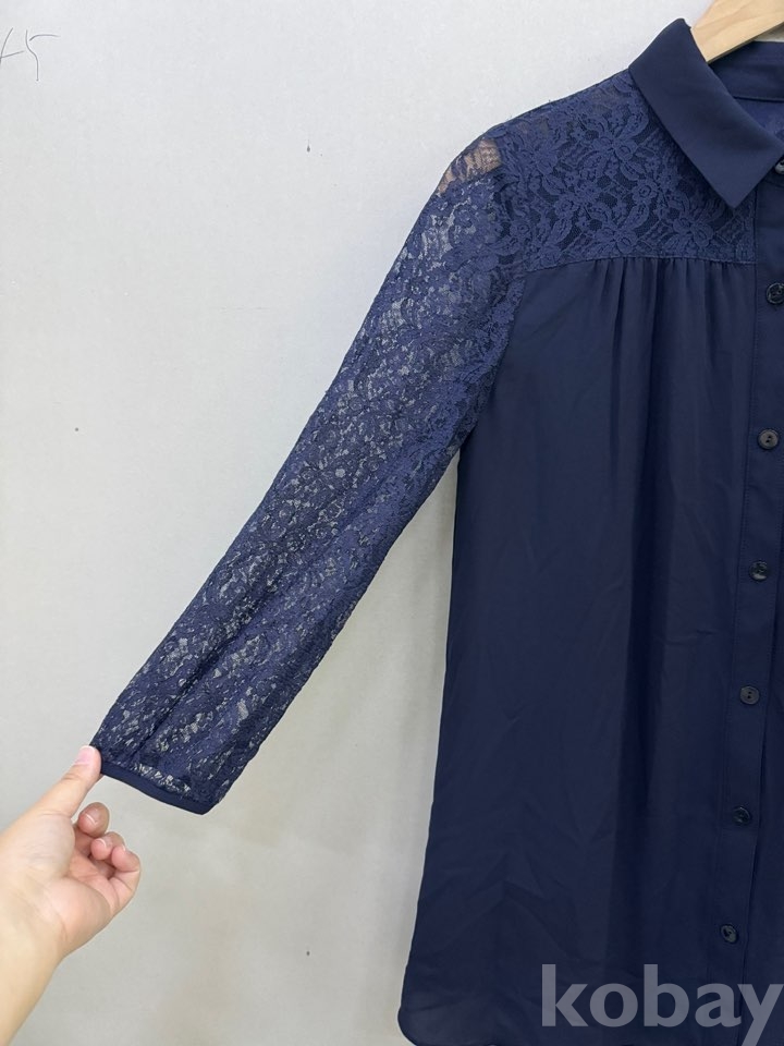 [천원옷장] #32 고급스러운 여성 네이비 레이스 배색 블라우스 7부소매 66-77