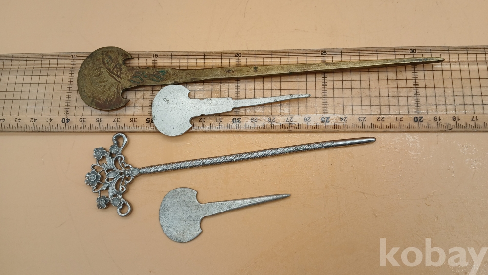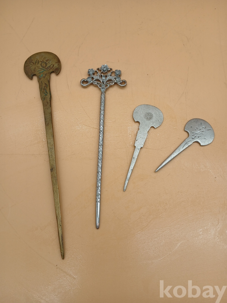 이화문이 찍혀 있는 우리나라 전통 빗치개 4점 입니다.