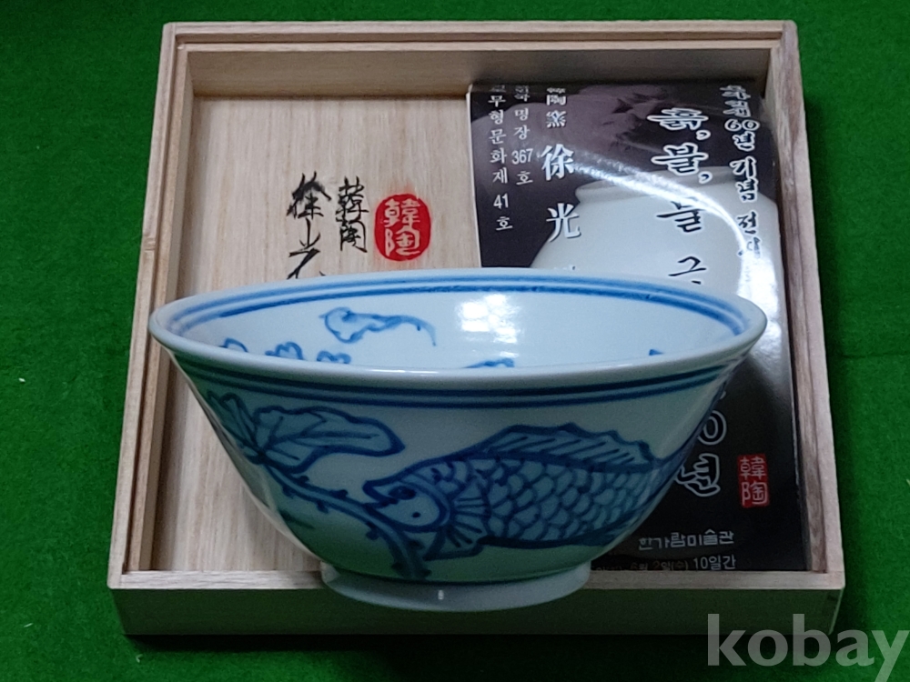 무형문화재 한도 서광수 명장 청화백자 연꽃 어문 발 입니다