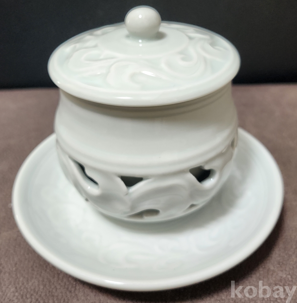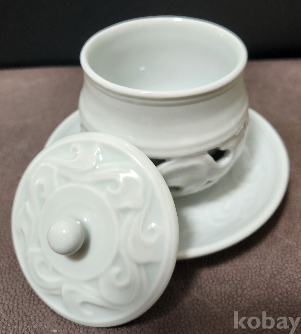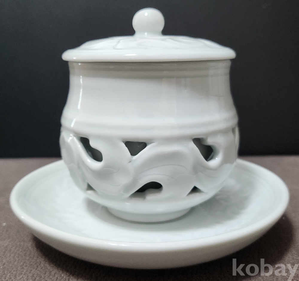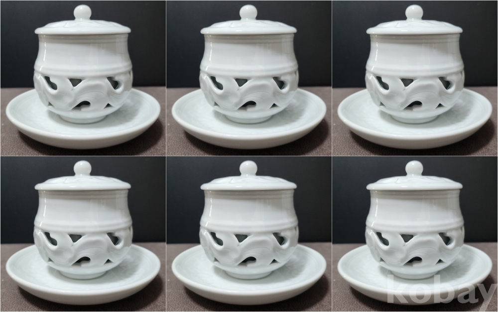 백자음각초화문투각다기 白磁陰刻草花紋透刻茶器 < 6점 세트 作品 >