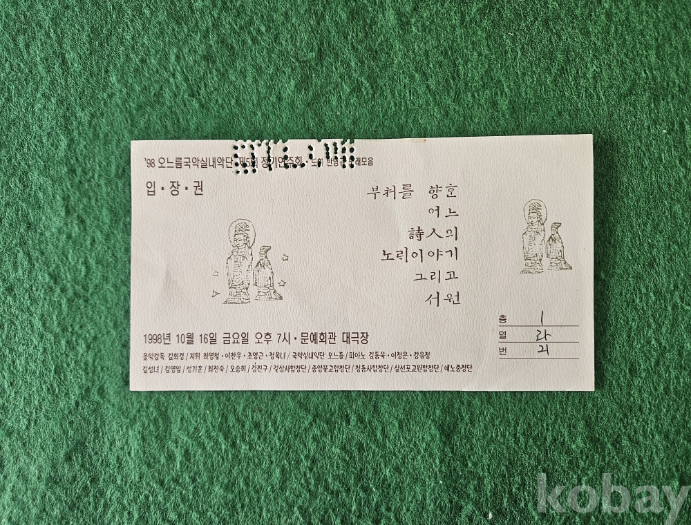 - 98,오느름 국악실내악단 제5회 정기연주회 입장권 1매